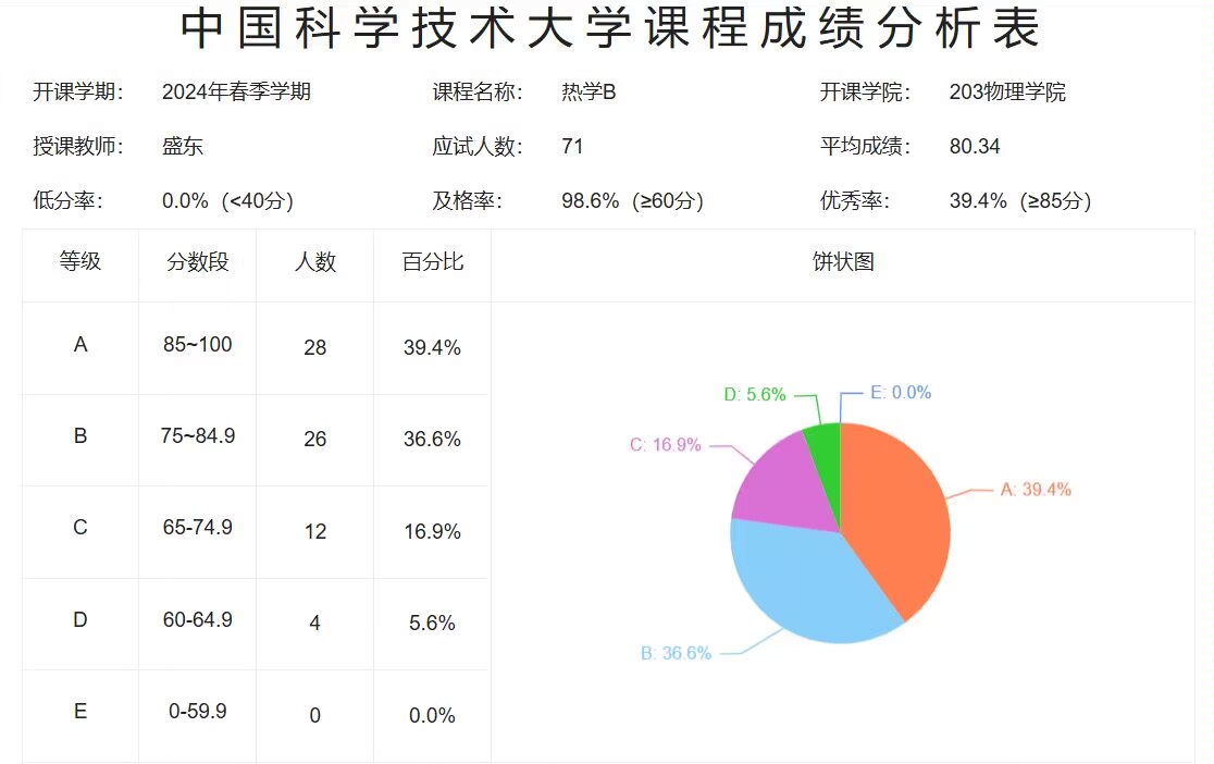 私心认为老师上课很不错,但是学校整体设置的6个星期学习热学B还是很难绷,基本全靠速通,复(yu)习(xi)起来压力非常大,且经过本人观察感到B的卷子范围可能大于A,难度大于等于 A…