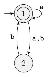 3. 画出识别下述语言的DFA状态图,字母表为\(\{a,b\}\)。
