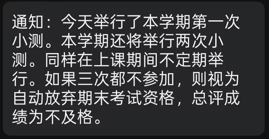 这门课确实存在着一些问题,PPT过程简略,任爷上课也确实有些“侃侃而谈”,以及为了到课率而连续小测签到。记得第一次小测是早八,那天我起得挺早的,不过到了教室也过了七点半了,当时从后门往里一看发现整个教室只有任爷一个人,一方面感叹任爷对教学的热情,另一方面也觉得这个到课率确实感人了🤣,果不其然就小测了(现在回头想想发现任爷每次课都是提前挺久到的教室,貌似从来没有压点或迟到过,对教学真的是很上心了,站在任爷角度想一想,不管是谁遇到这种满怀热情走入教室发现空无一人的情况都会挺失望的吧)。