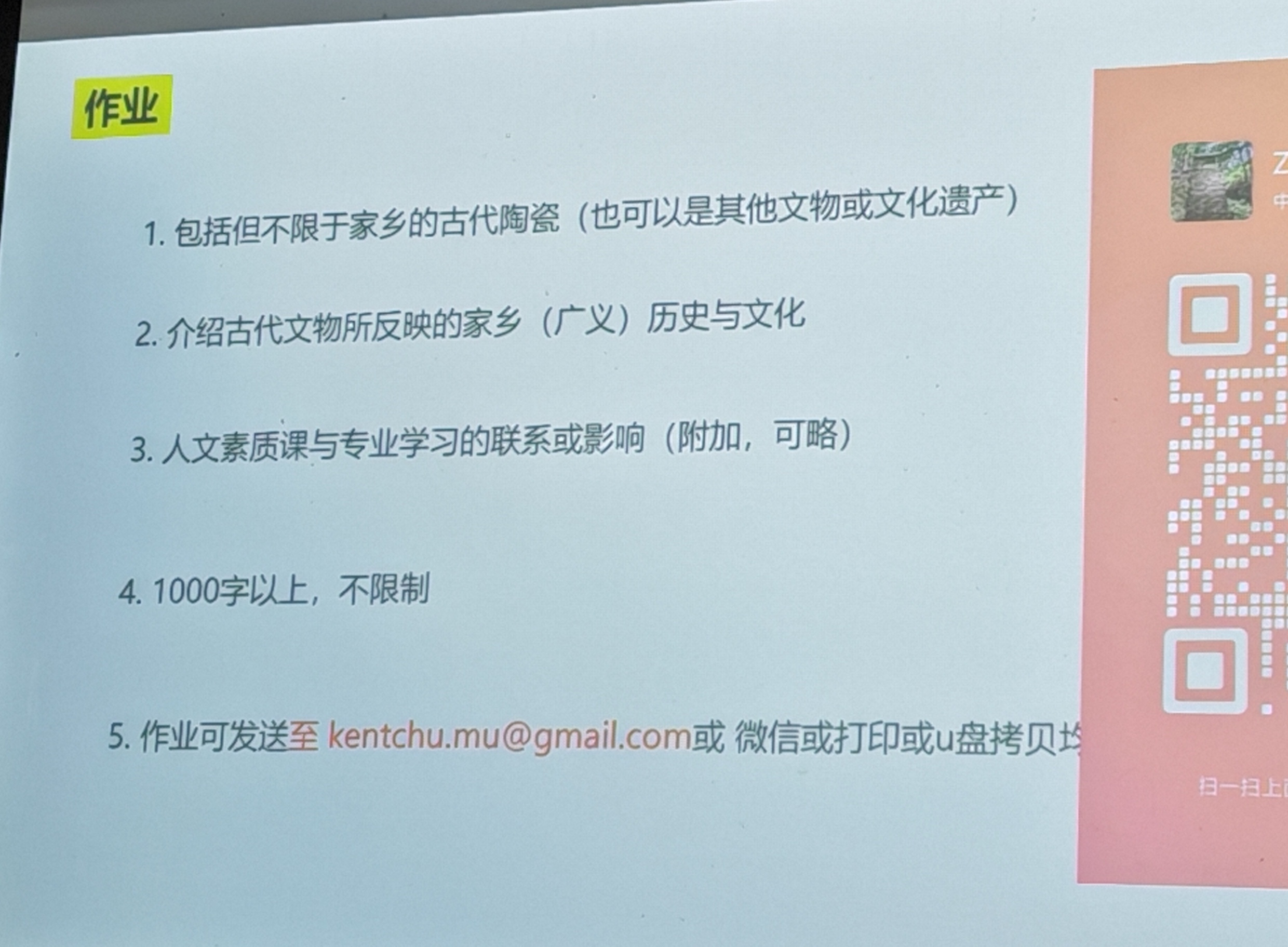 因为是第一年开课的缘故,平心而论,选朱老师课的同学不是很多。但是上课氛围是肯定可以的。此外老师的PPT有专业的内容资料,从瓷器表面特写到陶片组分分析,不能说是应有尽有,也只能说是非常丰富。