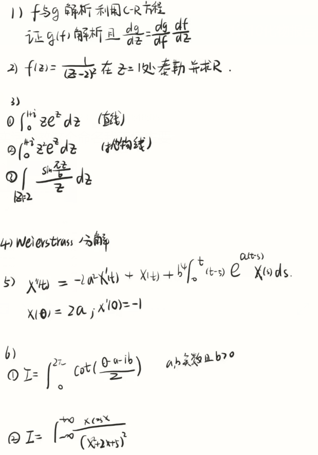 3.积分题,共三道,前两道考察复变函数路径积分(直线、抛物线),第三道考察柯西积分