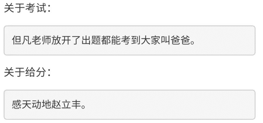 赵立丰老师的给分策略被称为“感天动地”。许多学生反映成绩超出预期,主要依托于课程高难度基础上的“强大的奶力”。例如,“期末只考了23分,期中70,总评竟然给了82”。给分上的宽厚使得课程的整体评价更加积极。