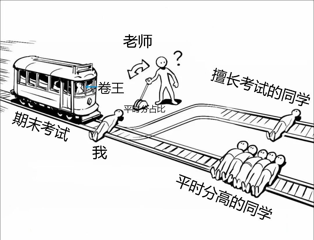 平时分给的比较残忍。虽然一开始说了十次作业选择八次成绩,但是本身给分就不好,一堆人拿9+,8+也不少,最终平时分也不算好看。关键问题是,最后出成绩之后,明明总体成绩已经很差了,连平时分也不愿意给满,不仅令人迷惑,而且让人很不舒服。还有同学不知道哪里找了答案,然后藏着掖着,期末拿出来跳脸。平时分本就不是作为考核用,更在于衡量态度,你有没有花时间学习,但这门课学习过程就是比较痛苦,我花大量时间完成作业(虽然我也知道做错了不少),结果最后就是一个8分。如果将平时分看得这么严格,又何必给那位期末“泄洪式”提交作业、只求不挂科的同学满分呢?结果到最后,只有我变成小丑了。抄作业的同学满分、期末泄洪提交作业的也满分,但是我没有,甚至最后总评也不愿意调一下。