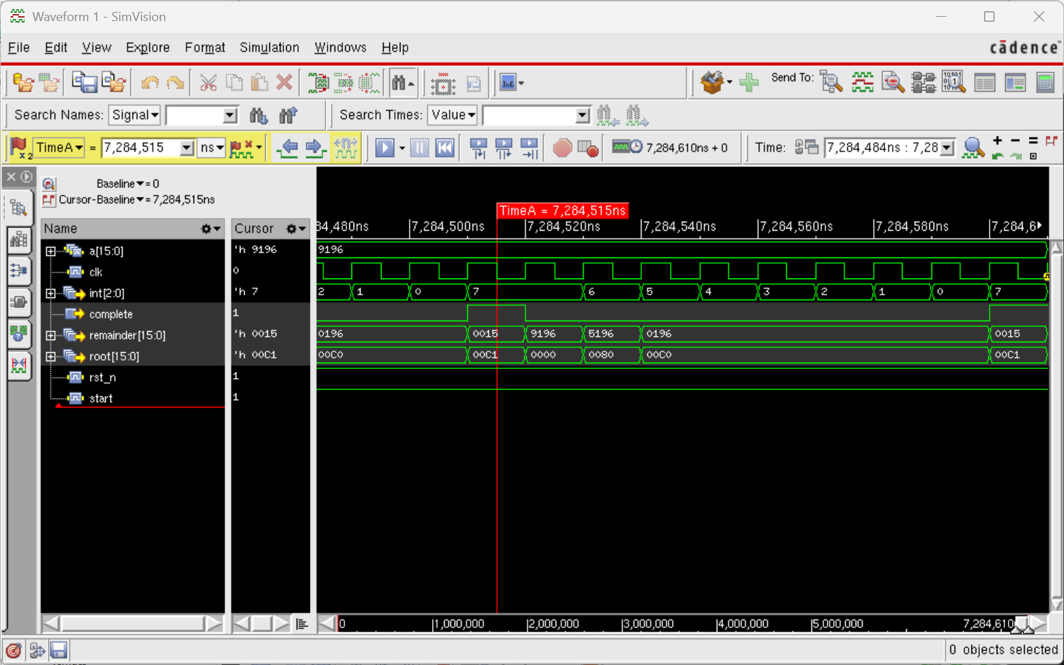 大作业这个代码真有点神奇了,算几百内的平方根都没问题,算上万的就一动不动了,明明位宽都是够的,这程序本质算再多位也只是超模肥肉的堆砌,怎么会出问题呢?(这个问题算是解决了,PPT上给的输入位宽2N,平方根位宽N,余数位宽N+1;但是这个余数的位宽我估计是不够的,如果q7==0那余数就可能有2N-2位。所以我把输入、平方根和余数的位宽全部改成16位就可以算三四万都没问题了。)