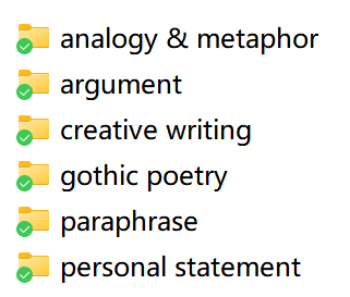 特别感谢楼上的倾情讲解,就不再赘述每次课程的具体作业要求,就pia一个文件夹的截图,然后挑着记忆点讲一下这门课带给我写作上的提升吧。