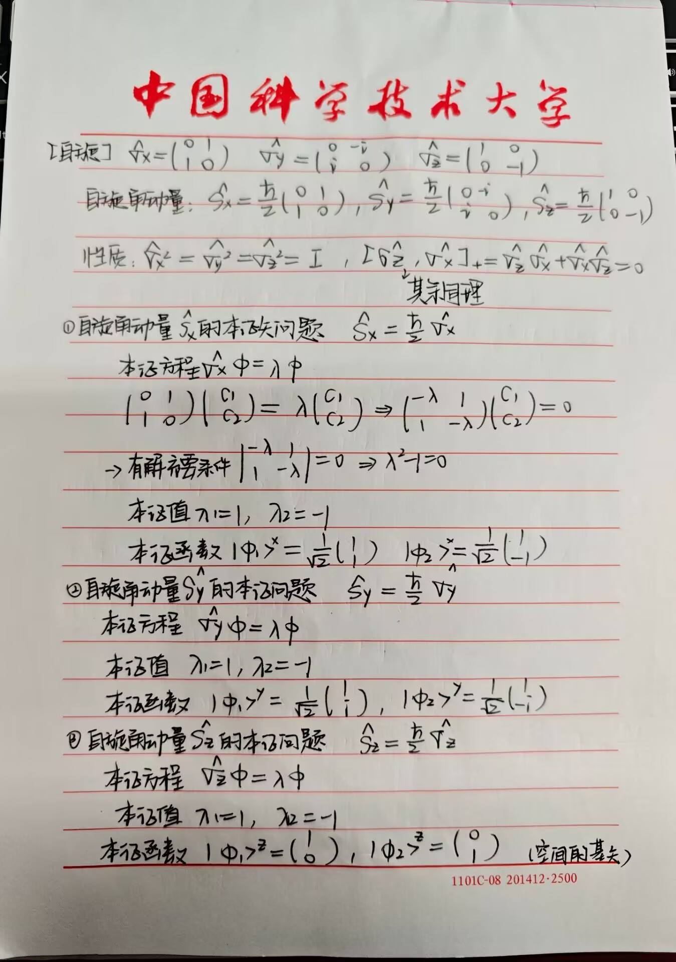 昨天晚上做梦梦见S=(ћ/2)σ,然后σ变成一个东西把我铜丝了,,,希望自旋的大题涂爹能多给点分