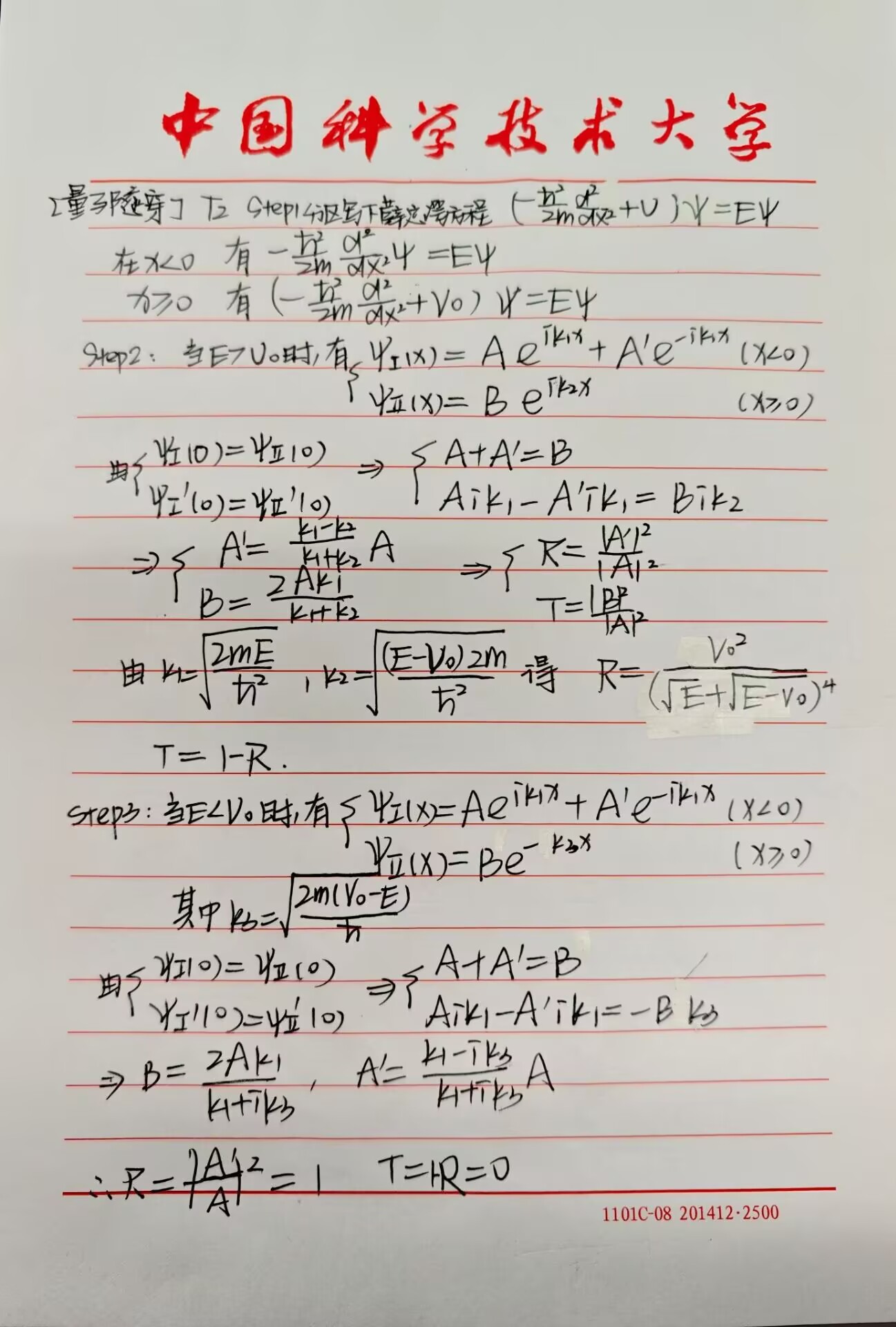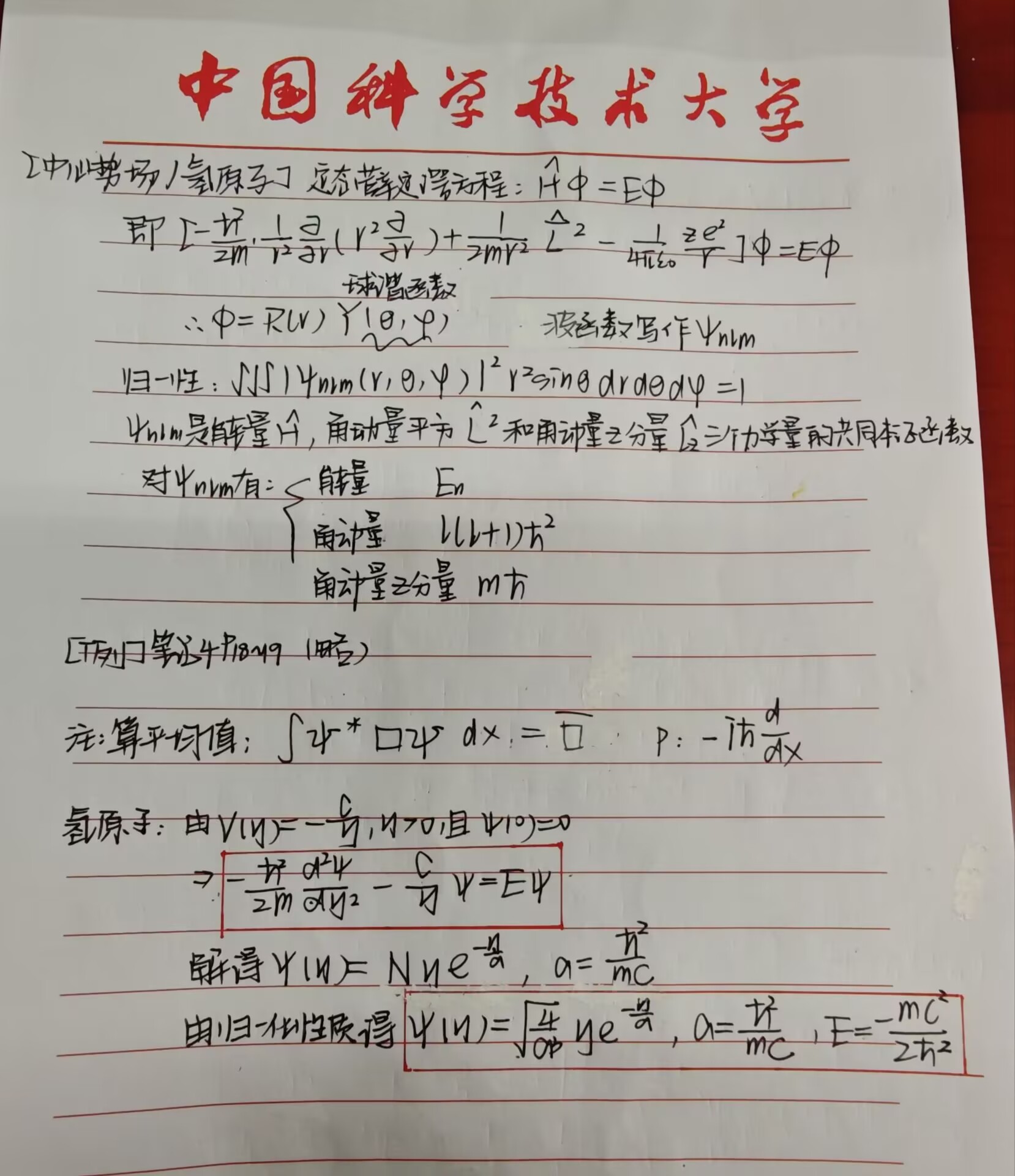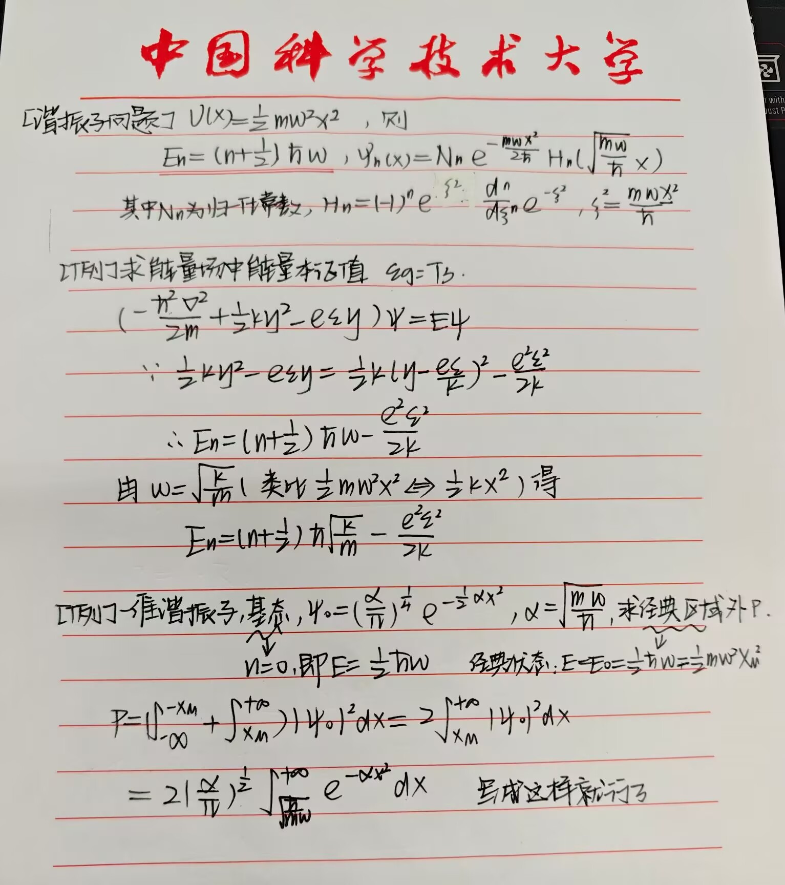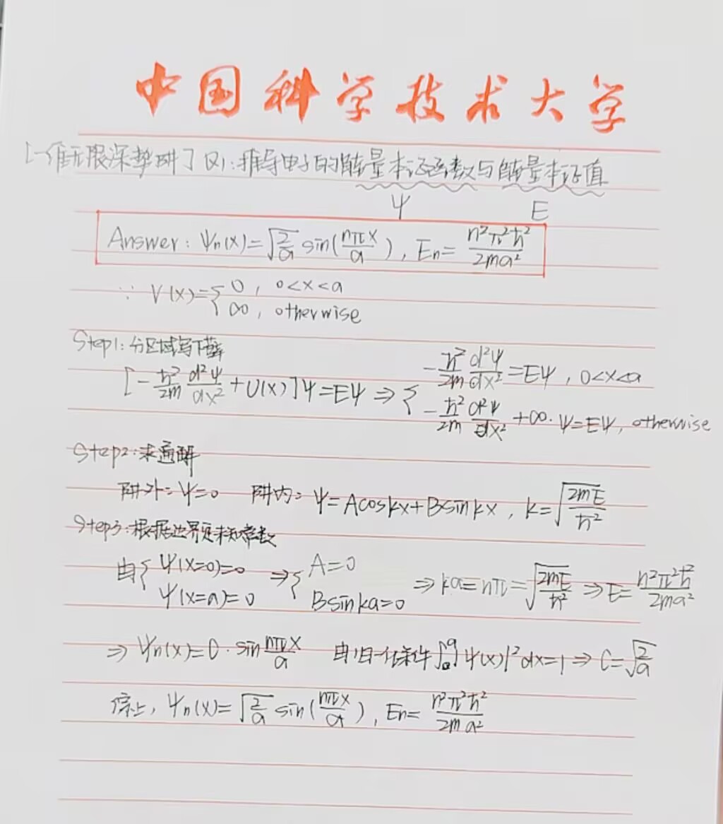 最终,你还是向室友借了昨天的量子物理笔记,看到了笔记里简明易懂的例题讲解,脑海不禁浮现出涂涛老师的大嗓门: