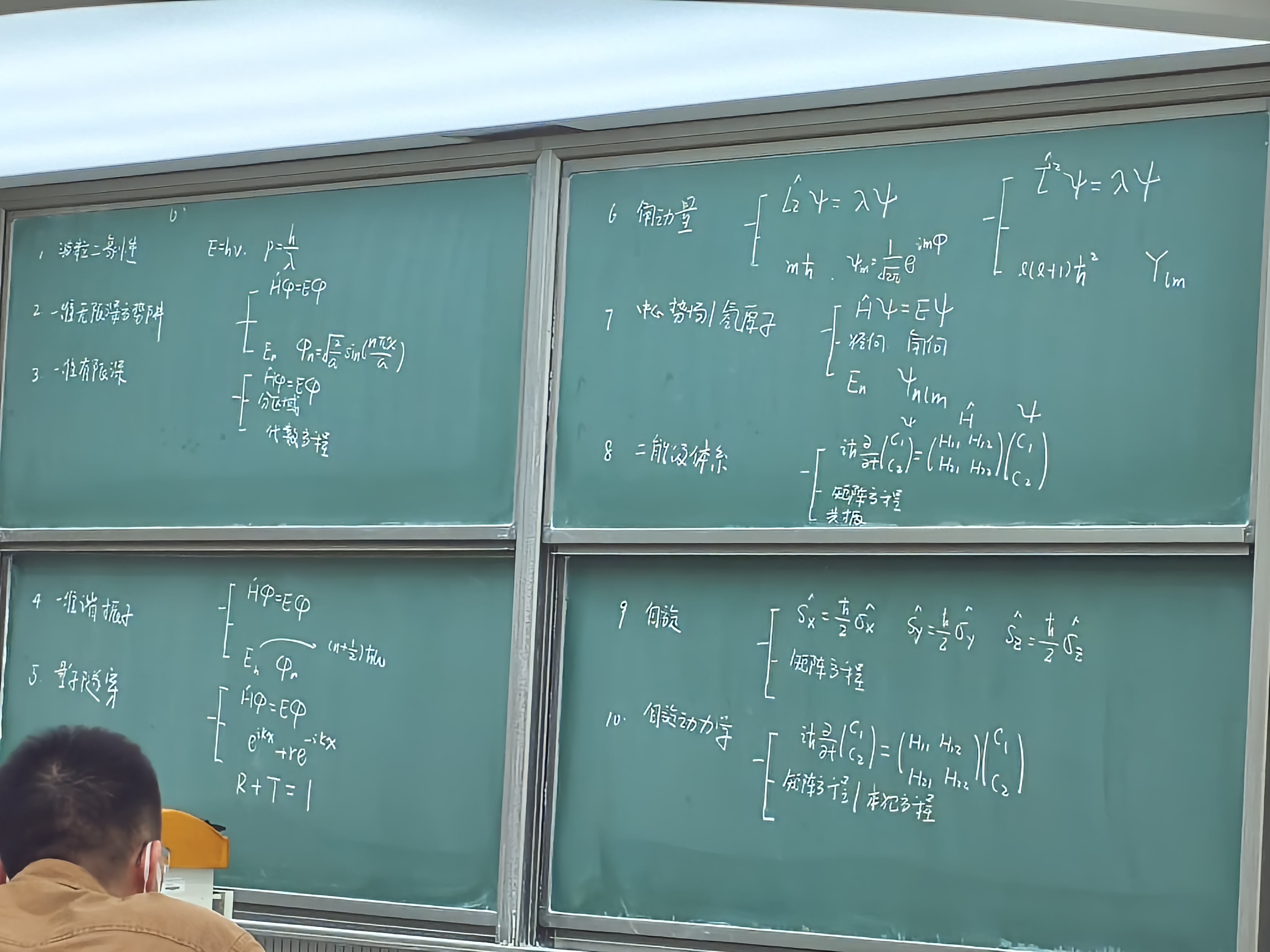 你想起了涂涛老师的量子物理课,以及黑板上那一个又一个薛定谔方程,烦闷减轻了不少。