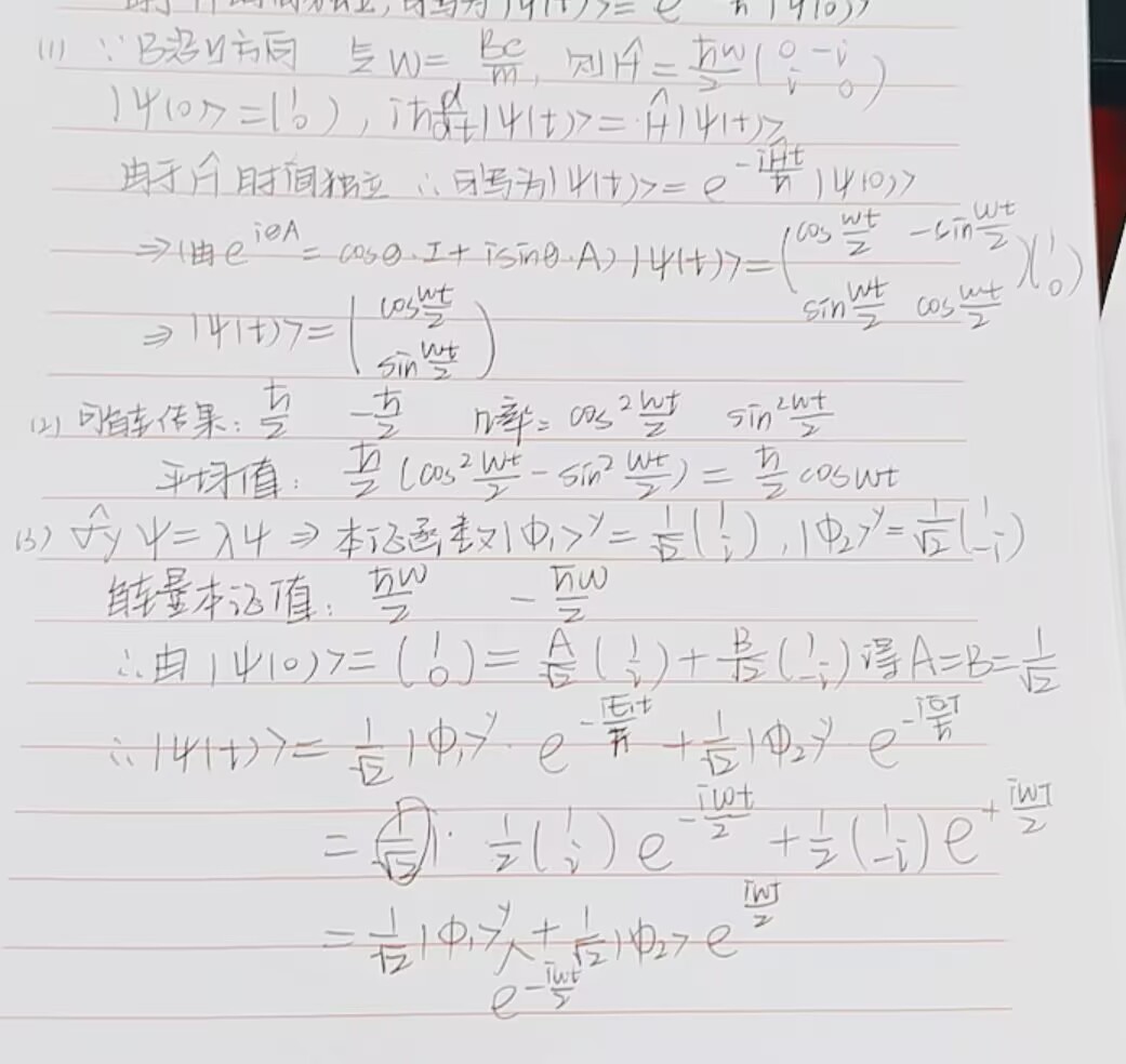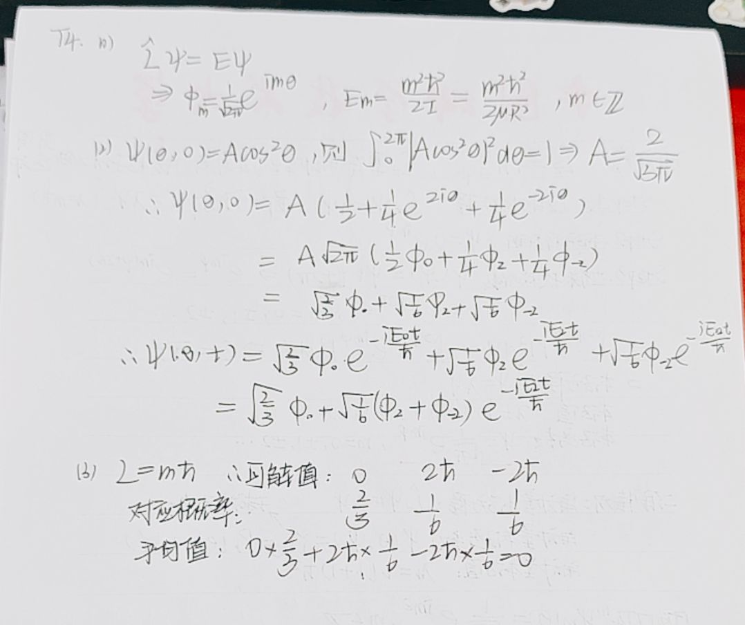 重点感谢阿笠博士学长发在pksq的往年卷。前面的题都和往年卷是一样的,也都是上课讲过的题目,算是速通友好。不过由于我记性不太好,有的式子昨晚记得今天考试忘了…很愧对这份往年卷。自旋的部分由于这部分的回放时间来不及了我没有看,借了同学的笔记简单看了一下,所以不会写TT。估计没见过的题就是今年的公选题了,同学戏称涂老师对抗公共题的方式是把公共题调成5分。然后经典最后一题,最喜欢的方程😭涂爹,没有你我的量子物理可怎么办啊。