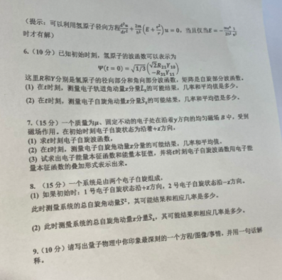 考试难度:本人是地空学生,本来妄想选量子物理炸鱼,但是由于过忙,直到6.19号16:30数理方程A期末考试收卷前,量子物理这门课一点都没有学,但是在6.20号16:30量子物理期末考试收卷之时,题目却全做出来了。什么成分不用多说了吧
