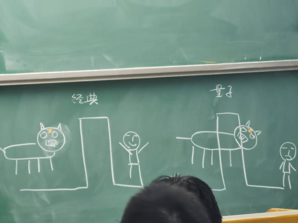 tt老师最后结课说的话还挺让人感动的,大概意思是:量子物理对于你们就是一点用没有,你们可能在日后不会用到学过的一个公式。开学的时候我在说量子物理很有用,其实,我只是带你们从量子物理的世界路过一下,领略一下这里的风景。(感觉tt老师好真诚555)