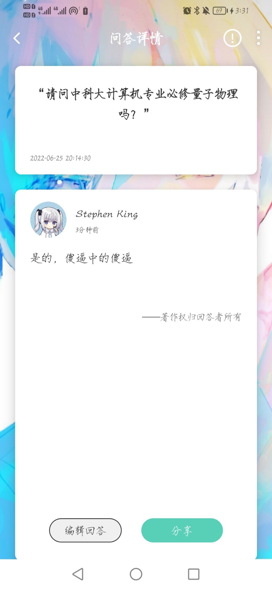 不过说完物院学生,来看看计科的“先见之明”,所谓量子科技人才的政治方针,我笑了。真就应付上层呗,上层还说要考虑学生身心发展呢,你倒是听听学生意见啊。学生骂的不够清晰听不见还是单纯的XX啊?(dddd)