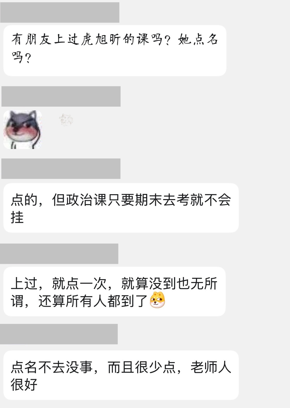 总体评价:虎老师人特别友善可爱,非常推荐选。 如果仔细听课,不难发现虎老师备课充分,讲课生动活泼,在老师的课上总能撷取一些美妙的东西(精彩的论述、美妙的音乐、神秘的故事)。上课老师是不会限制大家干什么的,在这个课上我一般读读文献,写写作业,做做PPT,上这门课是研一难得的惬意时光。老师的为人,可以从下面几件小事窥见一二。 1除了不可抗力,这课我是必去的,有一次需要去西区办理事务,向老师请了假(虽然即便不请老师也不会为难)老师看到邮件后已上完课,回复我时上来就是迟复为歉,并让我安心办理,读来十分感动。 2有次老师上课看到台下一个人无精打采,于是亲切询问,这位同学你怎么一脸生无可恋的表情,是没带电脑呢,还是手机玩没电了,当时我真是笑哭😂。 3有次上课听到老师念了一段很精彩的话,还念了一首词,但课下自己去搜时没有搜到。最后一节课,我鼓起勇气向老师描述了那段话的大意,老师很快意识到那段话的出处,是一篇中央巡视组的文章,并分享给了我。那首词老师也一下说出了作者和内容,还说很感动竟然有人会认真听讲。