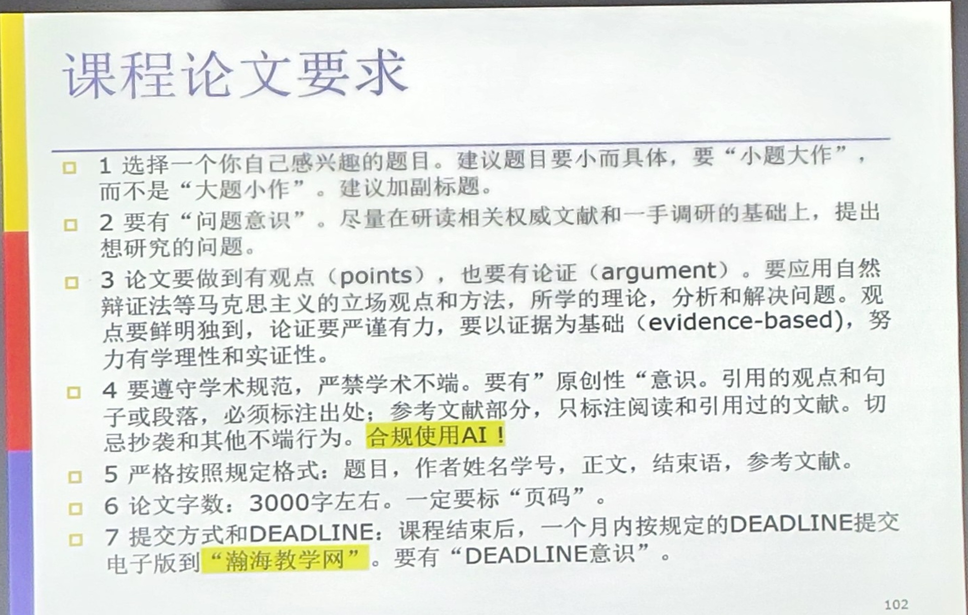 中规中矩的政治课,随机点名三次,偶尔有随堂或课下小作业,最后交一篇3000字左右的报告。