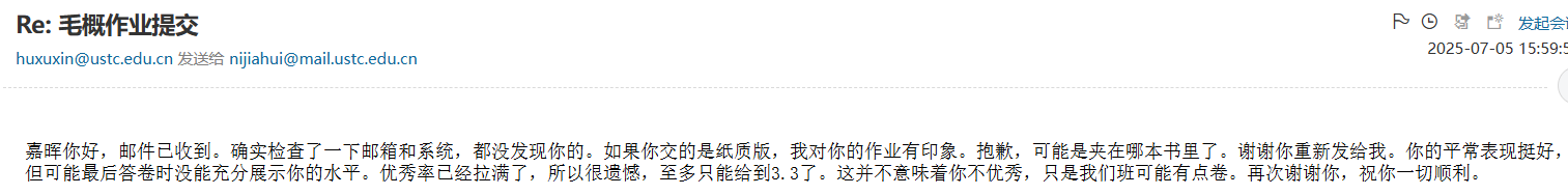 不管最后成绩怎么样,给虎姐姐的10分是不会变的。毕竟虎姐姐实在是太可爱了,考完试还书的时候还会问我考的怎么样,太温柔了,回邮件也会聊聊天,她还会说我笑得特别灿烂诶,对我印象深刻,这是什么神仙老师🥰🥰🥰