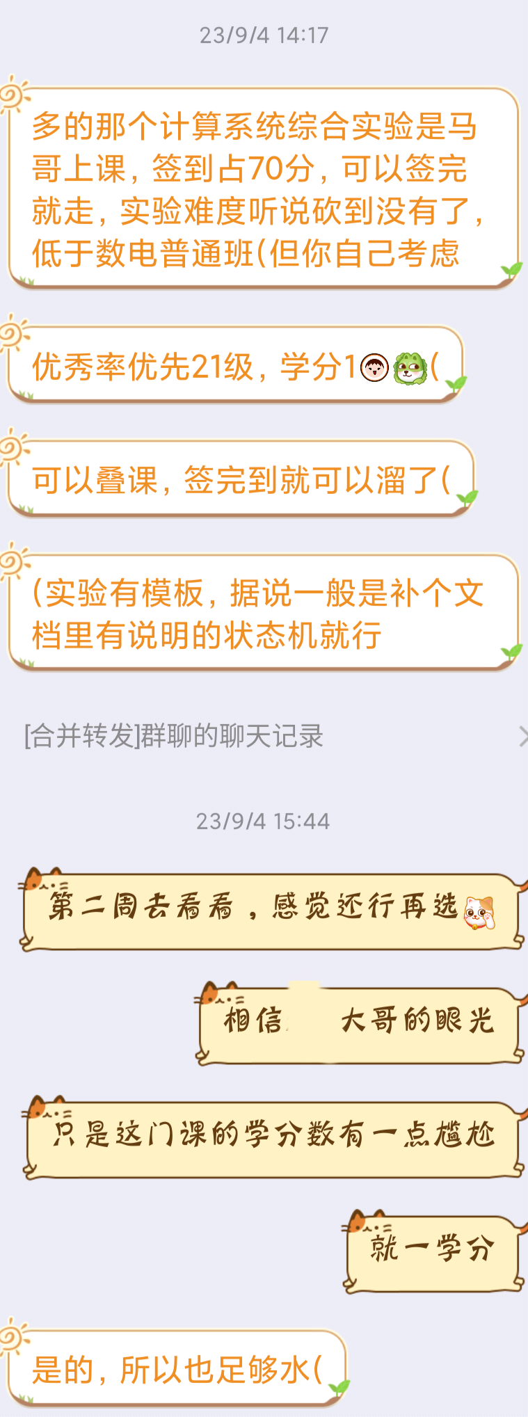 2024.2.8出分更新:只能说给分比想象中捞,不能全信既得利益者的高分评课。我没有极强的学习能力,照样用一学期的痛苦换一学分的3.0,顺便给忽悠我来的同学垫优秀率。据说有35人选课,3人中期退课,还有我想退课但机会用完了,准备下学期给成绩放弃掉。这门课让我充分认识到妮可“fly bitch”的本质,并远离体系结构方向,远离ljl,去寻找AI方向的实验室。
