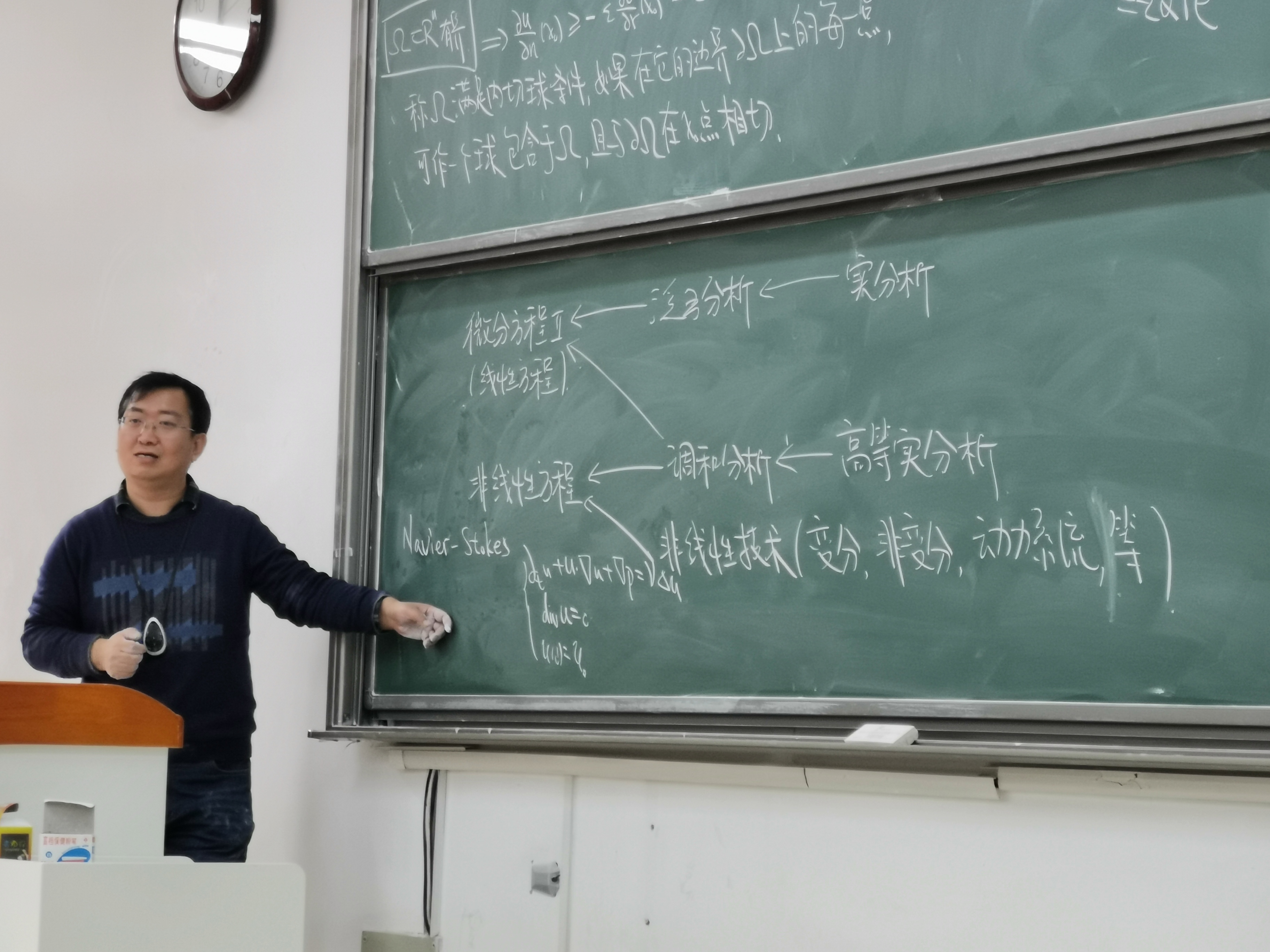 这门课分为两个部分,前半学期ODE(教材是丁同仁),后半学期PDE(教材是谷超豪),由于课时限制ODE部分讲的不多,甚至将幂级数解法放在了习题课,PDE部分的话,老师本人是做PDE的,感受到老师高超的水平,讲的也很到位。具体的课程内容介绍我就不说了,交给大佬吧。