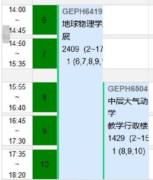顺带一提,过去教务系统存在bug,如果在两个设备上使用教务系统同时选课就能卡bug直接叠课。从2024年8月初这个bug被修复了,在此之前我成功卡bug把《地球物理学进展》与《中层大气动力学》叠在了一起,理论上研究生是不允许叠课的。但后续我核算了一下学期课程任务压力,感到太重,遂退掉了需要认真学知识的中层大气动力学,打算研二再好好学。日后应该也无法再叠上课了。