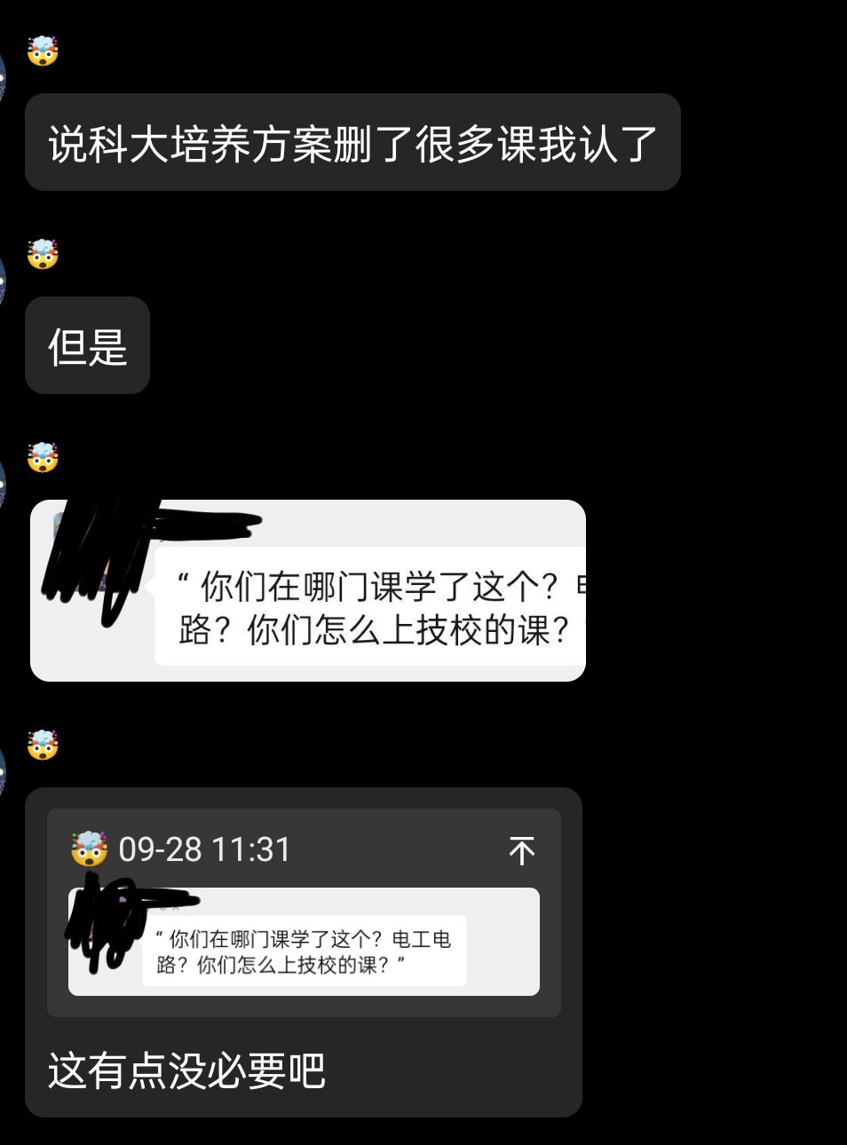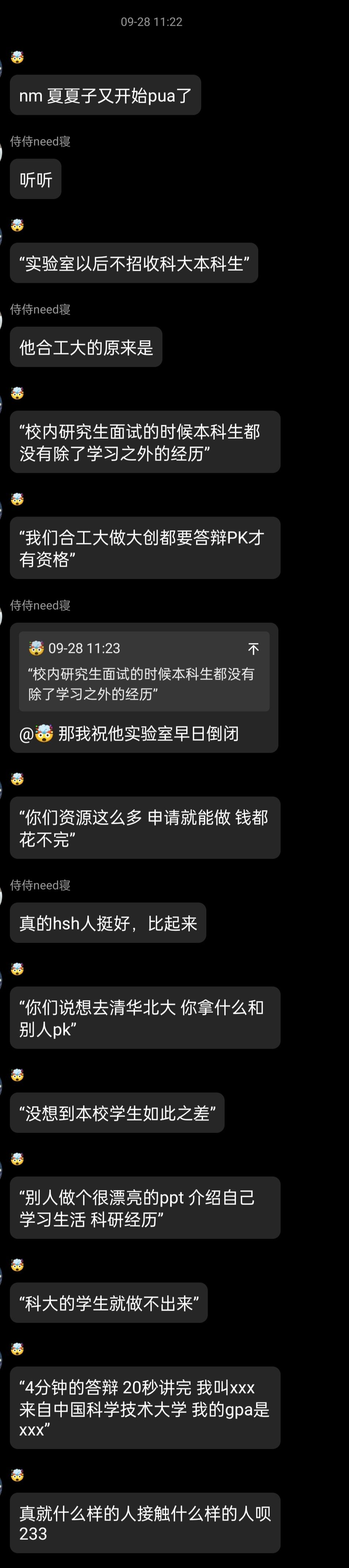 对科大学生抱有莫大的敌意 攻击科大学生不如合工大“以后实验室不招科大本科生” 大概以他的水平根本接触不到正常的科大学生吧