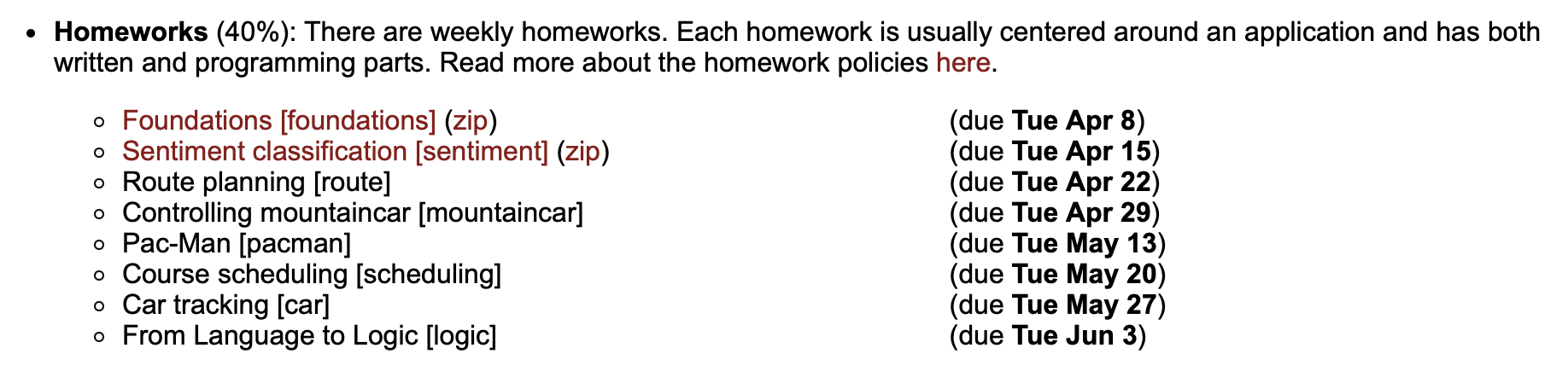 刚刚看了一下源课程CS221 Spring25的网站,其实Stanford的同学们和大家几乎同时在做这一份作业(当然,题目有部分不一样,不过代码量几乎相同),并且他们的时间只有一周。