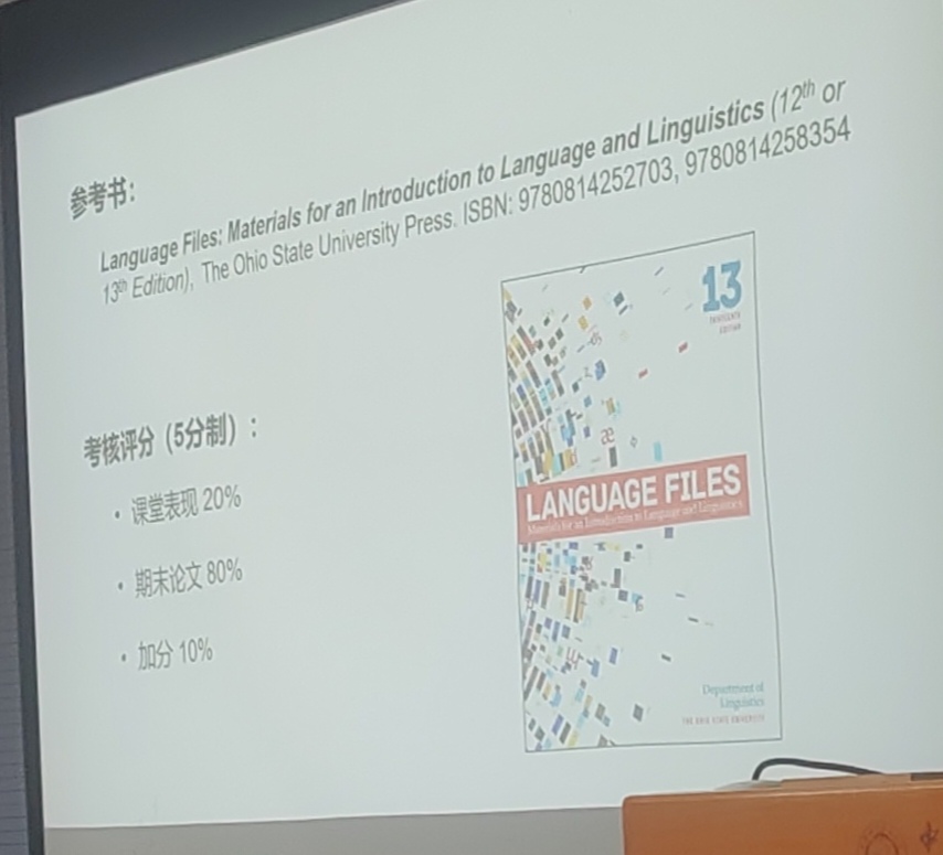 先聊聊课程的设置。众所周知,科大本科其是没有太多适合本科生的人文社科课程,这其实是非常可惜而且不太正常的一件事情。不过近几年也有努力改善的趋势,例如像梁永安老师的课程,以及中国纸墨笔砚等,能够在大学生活中选修一些这样的课程对我而言非常宝贵。但这些课程更侧重于“通修”,而据我所知像语言学这类更专业的课程是很难开起来的,因为科大并没有这样的老师。袁老师是前年才来到科大语言交叉中心的,其实稍微翻看一下老师之前的学习与工作经历,包括老师的上课表现,应该能够看出袁老师是相当相当正统的语言学方向的研究者。能够有这样一个机会去上这门课我觉得首先应该感到珍惜。而且袁老师对这门课准备的很用心,而且毕竟是一门专业课但是面向科技大学的同学,袁老师之前开组会时候经常问我,即从一个本科生的视角,给出课程、作业的一些建议,从而让尽可能让大家多了解语言学的基本知识并减轻负担,而且从最后的开课地点放在五教而不是高新,就能看出是希望让更多专业以及低年级的同学来了解语言学的。
