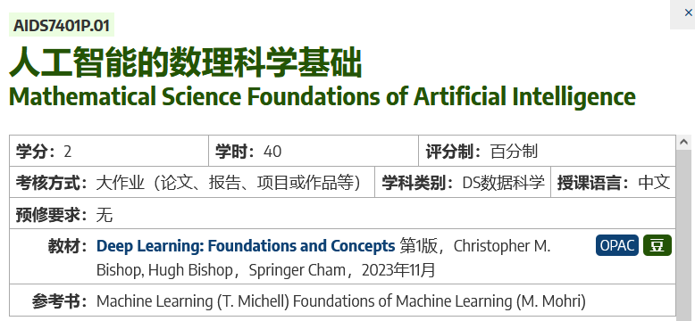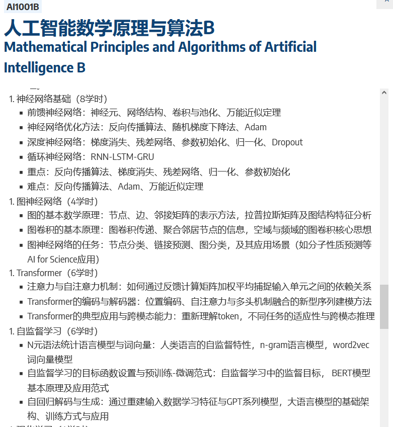 欲查看新的课程,请移步《人工智能数学原理与算法A》(4学分)与《人工智能数学原理与算法B》(3学分)。