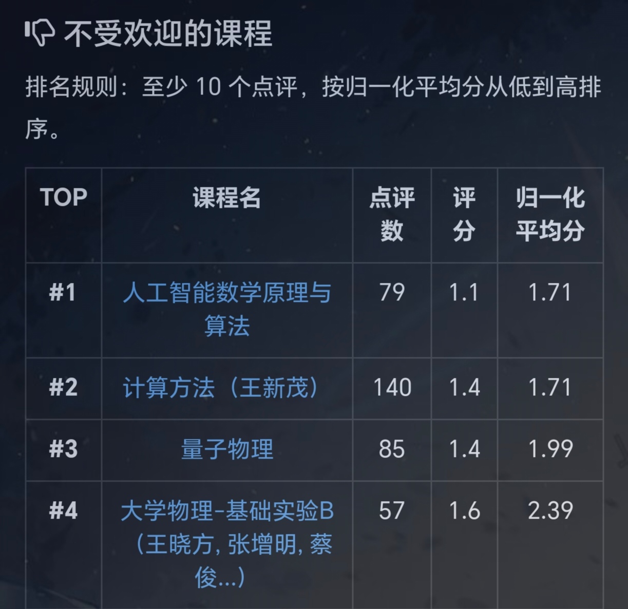 四编,该课程已经超越量子物理。喜提评课社区最不受欢迎榜第二名。