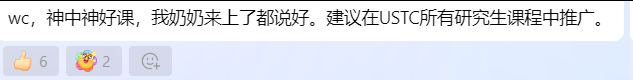 我认为吕老师能够指出一个正确的方向已经超过绝大多数的老师了。因为即使是在LLM如此发达的今天,我们不再需要像矿工一样精疲力尽地去挖掘有用的信息,一个正确的方向仍然能够为学生的成长提供相当的便利。包括老师选择的参考书也是相当经典且深入浅出的一本书。从资料选取上就可以看出吕老师的水平绝对是相当高的,选这个课更多地是为我打开了机器学习的大门,作为学生时代的最后一门课,还是非常具有纪念意义的。
