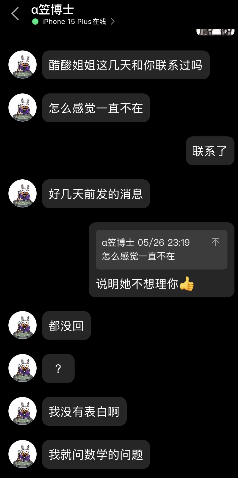 我希望这位身材肥硕、连续几十年保持单身、个人主页放xvideos链接的w助教只是单纯因为压抑到处发癫而不是因为我纠缠上我朋友,否则我不知道我要如何才能负得起这个责任🙏我和这位甚至没见过面,只是加过好友聊过一两句天,我无法理解为什么会发生这种飞来横祸🤣可能经过这次一波三折的历练我以后也会能够成为不管发生什么大风大浪都心如止水一笑了之都互联网乐子人吧😆