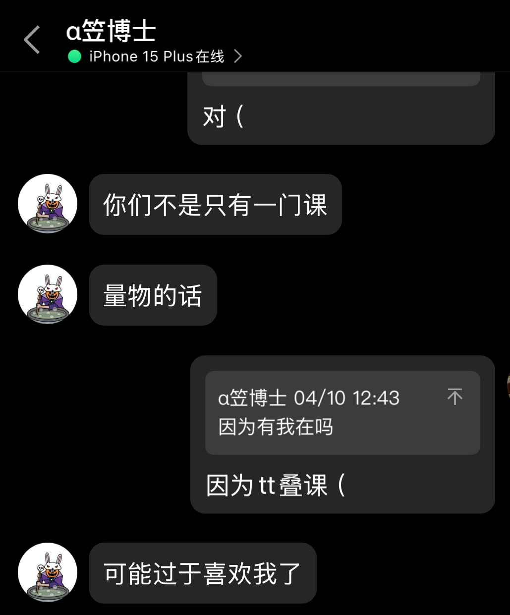顺便说一句,jwc你要不要看看给ai置的都是什么牛马:上学期电子技术基础逆天助教,这学期量物逆天助教+信号与系统逆天英文授课,仗着ai卷生卷死就喂我们赤石是吧😅