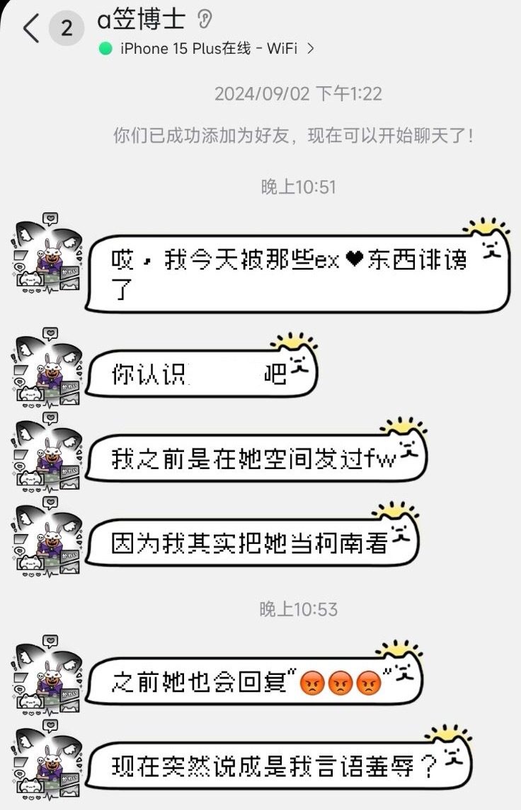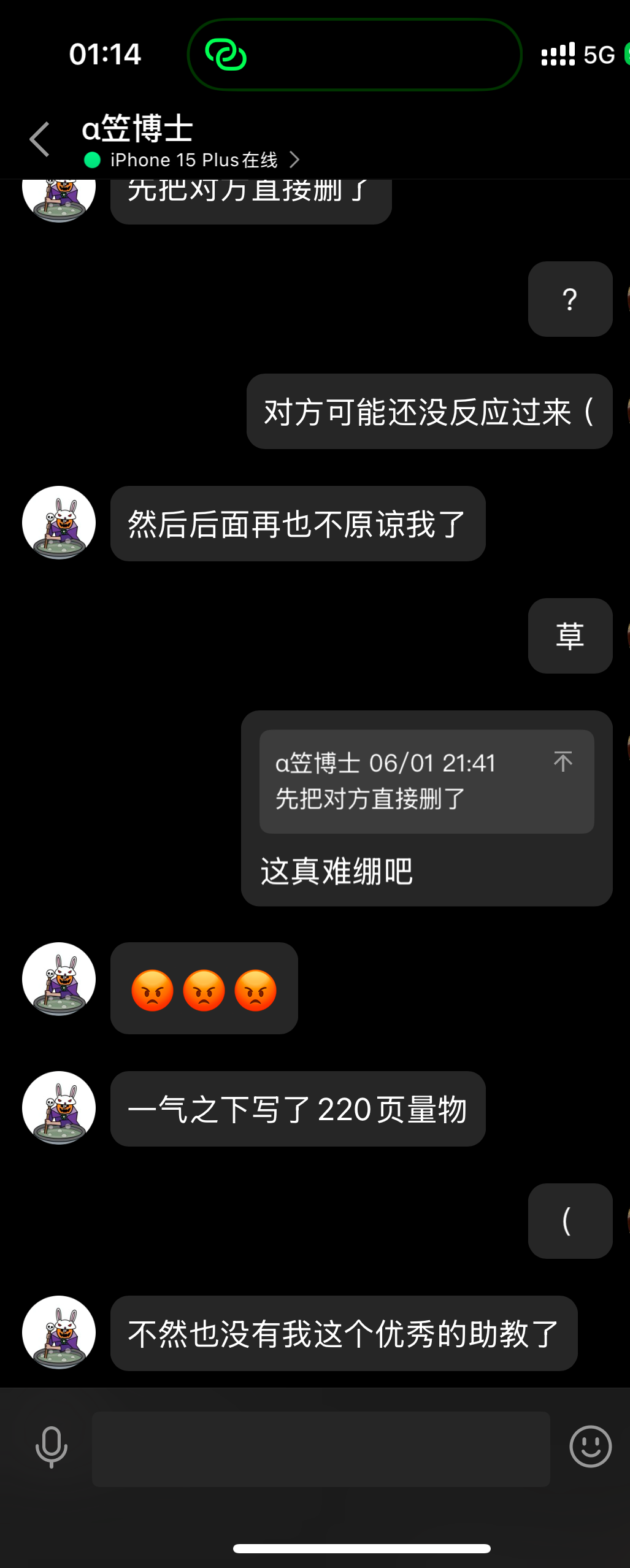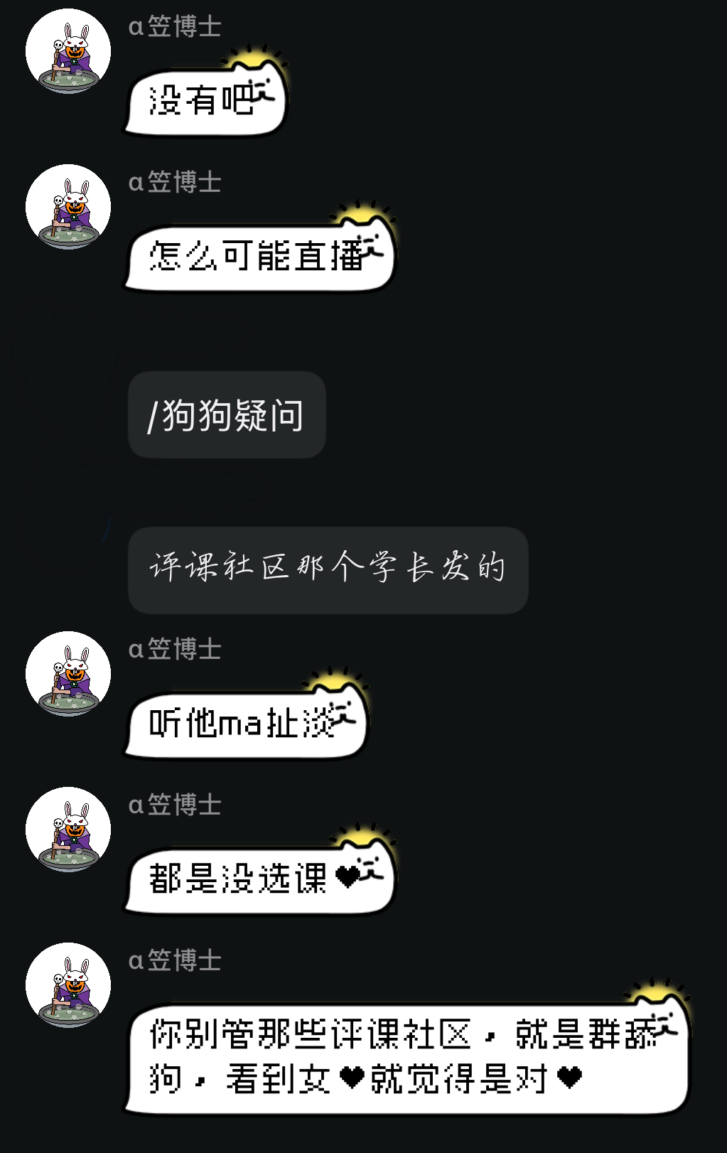 3.知道自己做了什么仍然嘴硬,一口咬定自己是“被诽谤”。甚至说出怎么当时都默许了,现在突然生气起来啦这种话(pksq说的)。在课程群大量人身攻击,还要来开盒我,真是闹麻了。