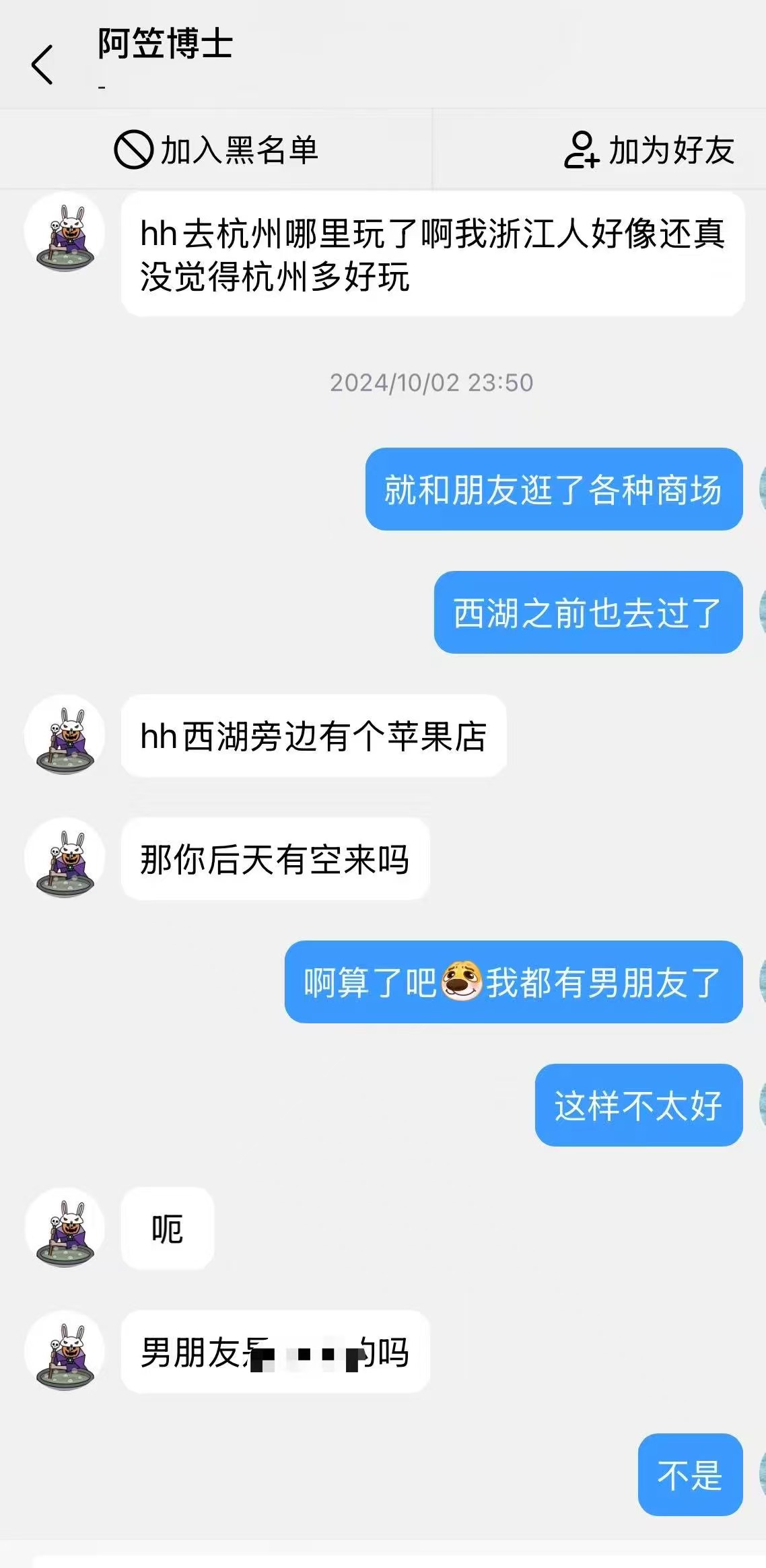 PS:前三张是他让我帮他追我室友,我已经极力劝说他不要来打扰了