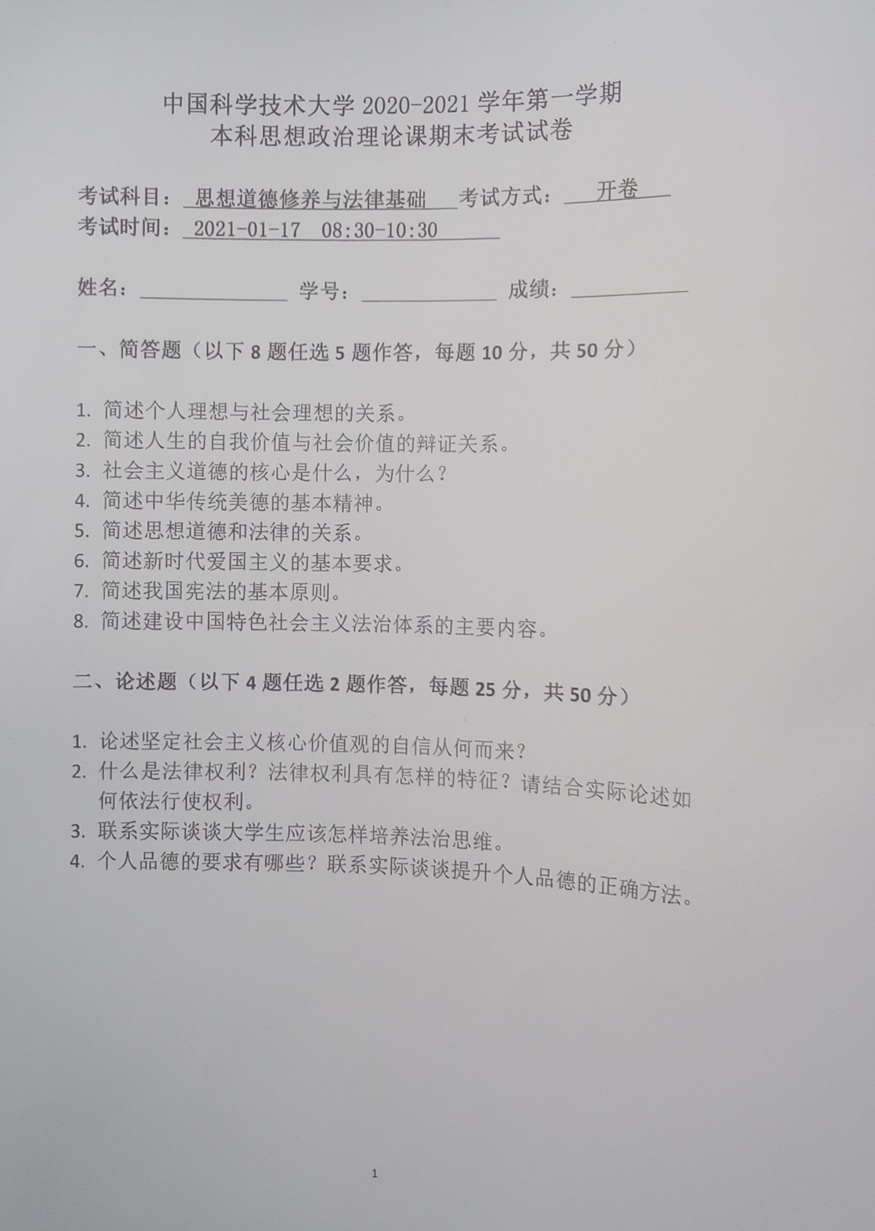 那些说给分不好的,请你们扪心自问一下,方老师的课你们真的有每节都认真听吗?他每次布置的小论文你们都有认真写吗?至少我每次都会坐第二排边上的那个位置,约70%的时候都在听课,每次有作业都会用一个晚上的时间来查找相关资料再码出一篇一两千字的小论文。而且考试考的也不是很难吧?第一道题职业道德,第二道题法律历程,第三道题列举他上课讲过的东西,多多益善。第一道题写作文,第二道题上课的PPT上有原文,凭印象也能写个八九不离十,而最后就是看你有没有听课咯~至少我感觉这样的考试很舒服的。 当然,这种课你说想学到什么东西很难,不仅是fxx这,你去问中国任何一个大学生他在思修课上学到了什么东西?老师讲课还是挺诙谐幽默的,偶尔会让同学上去交流自己就某个问题的观点,自愿有加分。方老师关于某些问题的见解也很独到,课堂上的案例也很有意思,至少我觉得不算无聊。 最后总评给我 4.3 ,挽救了我的GPA,成功登上 3.8。 哦,对了。我不是少院的,也不知道他对不同院系的同学是否有区别对待。