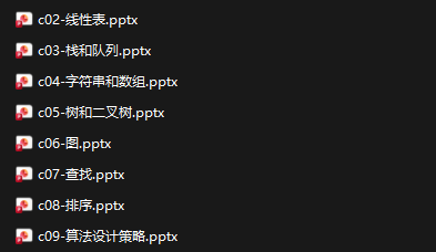 这课具体讲的内容可以参照课上给的教材,或者b站上的数据结构考研网课(我也感觉神秘,但是https://www.bilibili.com/video/BV1b7411N798/?spm_id_from=333.1387.favlist.content.click 这课基本上全覆盖老师讲的内容甚至还深一些,只缺少最后的算法设计部分不过反正那部分也不咋讲)。也可以看下面这张PPT合集,然后参照上面我挂出来的复习整理来确认范围: