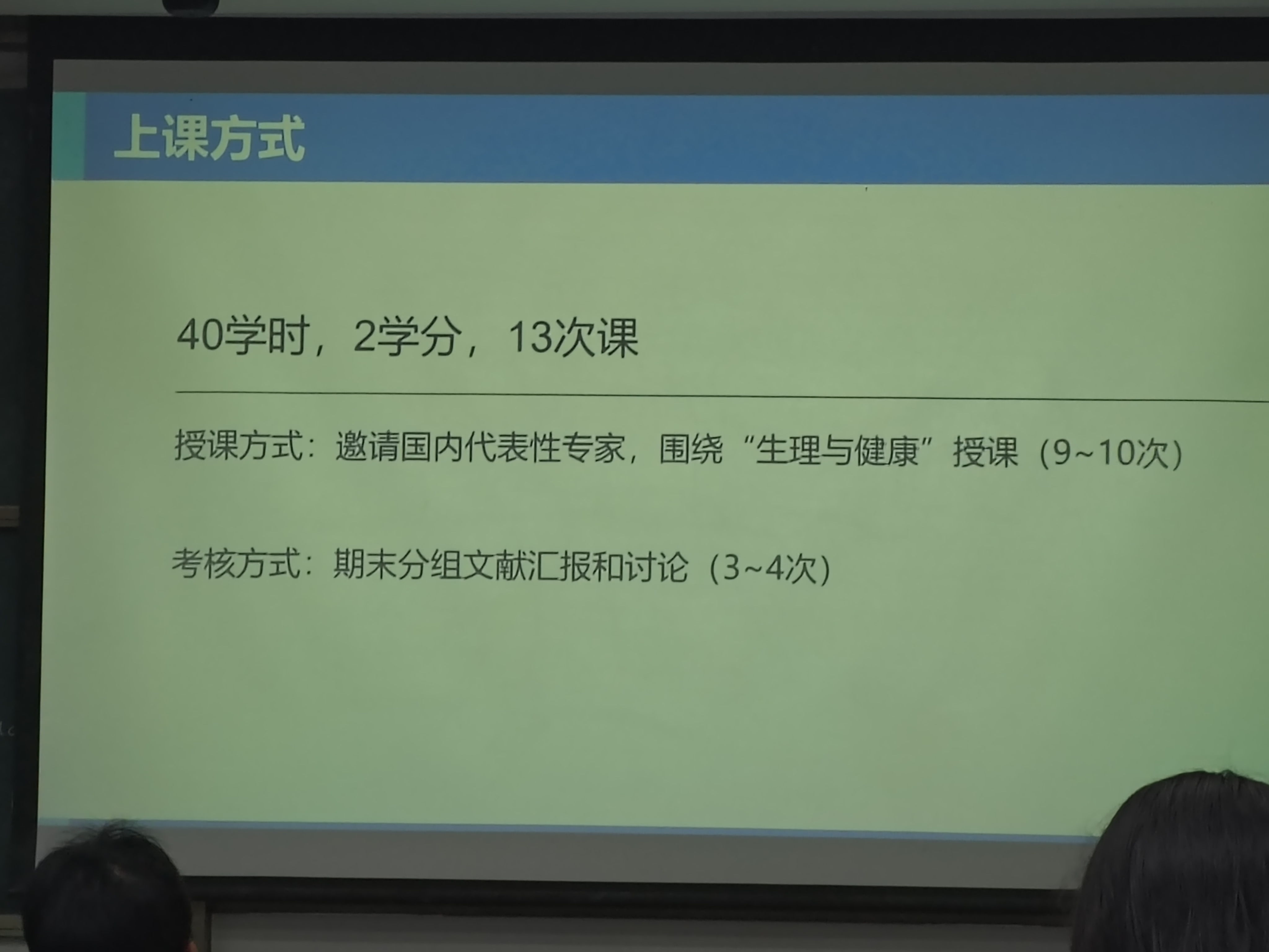 上课方式为讲座,会请科大和外校的教授讲他们有关生理与健康的研究,课上就听听讲座,也没有课上提问和课后作业,一般会提前一段时间下课。