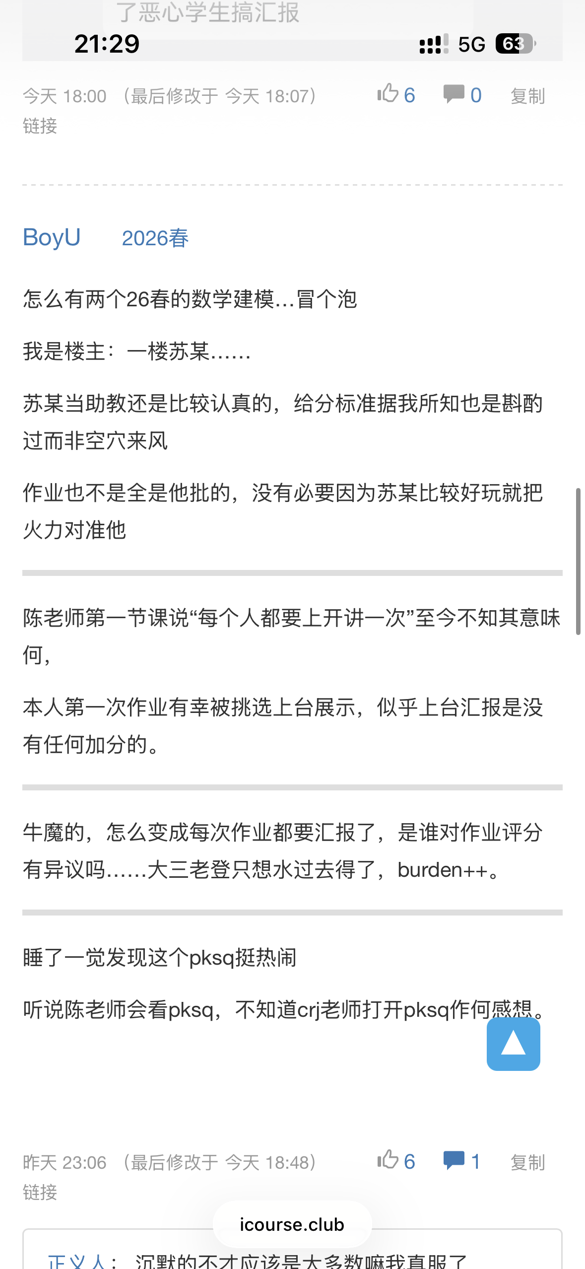 感觉现在评课社区的风向很奇怪,其实个人感觉匿名功能是为了保证同学在正常表达诉求或意见时不受侵害的一个功能,评课社区也应该是帮助后面的学弟学妹选课的一个平台,推荐也好、避雷也罢。不知道为什么变成了随意发泄情绪的场所。当然个人发言的内容由个人负责,这点也是匿名功能无可避免带来的负面影响。
