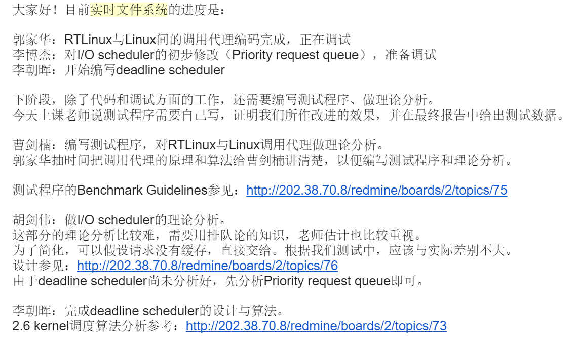 这门课的大作业是结组合作,整个 H 班里面大概是分了五组。做的内容都是跟操作系统有关的。我们组三个人(我和郭家华、胡剑伟)是做实时文件系统。