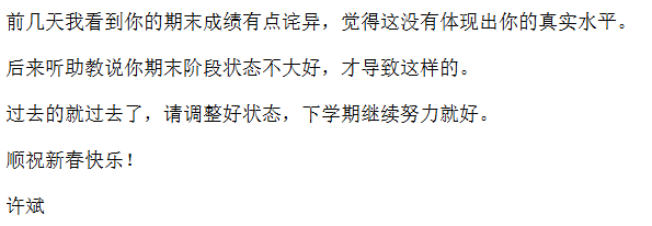 嘶,不枉我说不好意思见助教和老师,这下更不敢了(投降.gif)xb老师真的很关心学生啊啊(感叹)