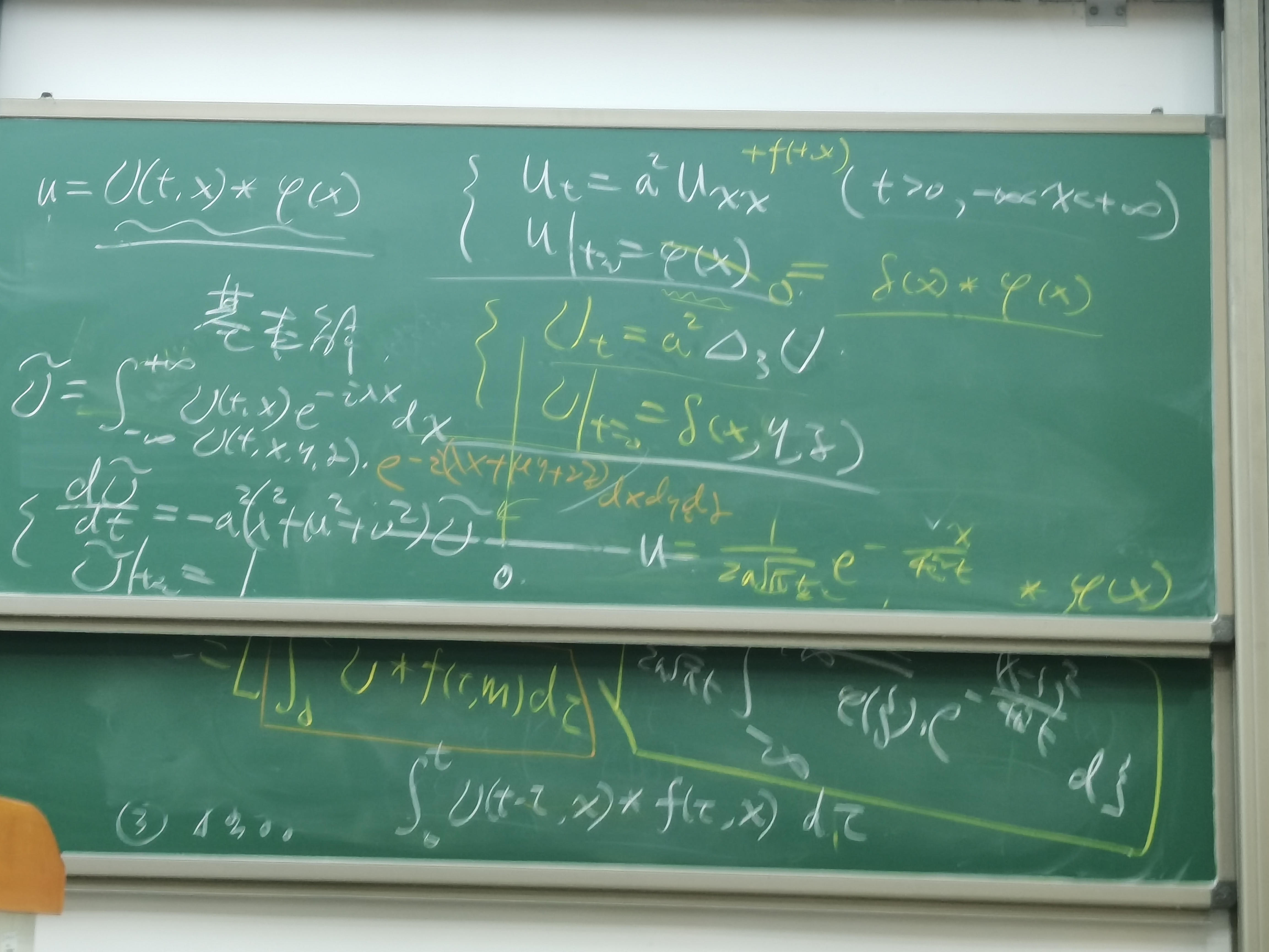 复变就是跟宋老师上的,今年数理方程就继续跟着宋老师了。个人感觉老师对数理方程的各章节理解比复变要更好,讲课思路很清晰,并且不是直接按着课本顺序,而是用更顺畅的思维逻辑去讲的。印象比较深的一个是分离变量那一章老师用问题引导去找出斯刘定理每个条件的用处,以及每个结论的作用,虽然课程限制不能把斯刘定理整个的证明给讲掉,但至少在使用这一层面是完全够用了,让人感觉第一遍学就把分离变量法应用的整个体系摸透了,很畅快很舒服。老师讲的还是很清晰的,体验也不错。