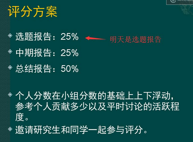 所以我们新生研讨课的报告上,基本上就是同学们各种发言提问,后期的点评是各个组互评还有研究生加入,只要不是时间太长大家失去耐心,我们的课上都是挺欢乐的。