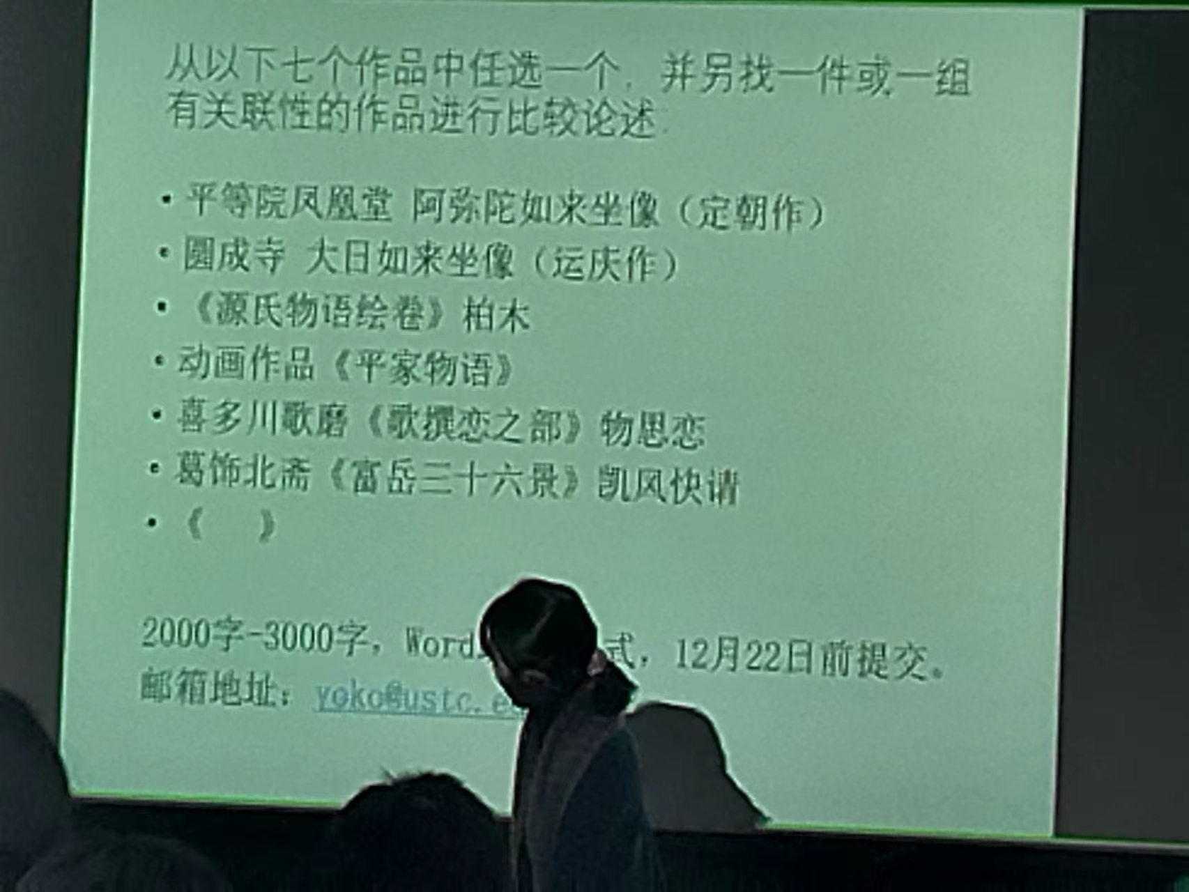 总的来说,这门课还是比较轻松的,适合对日本美术有一定兴趣和了解的同学。上课摸摸鱼也不打紧,但是对于自己感兴趣的领域最好认真听听,对期末论文可能会有帮助。另外考勤也不要漏了。