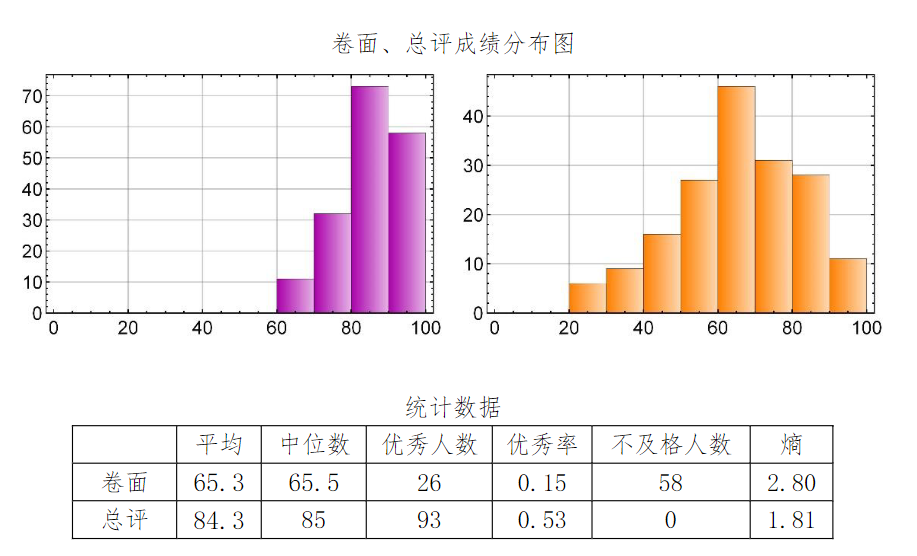 | 人数 | 平均 | 中位数 | 优秀人数 | 优秀率 | 不及格数 | 熵 |