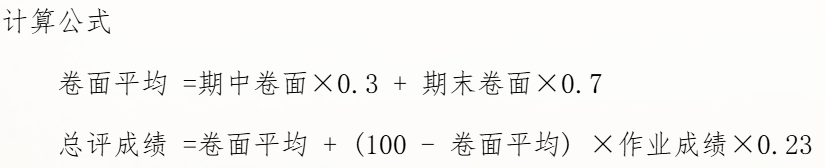 卷面分 =期中卷面×0.3 + 期末卷面×0.7