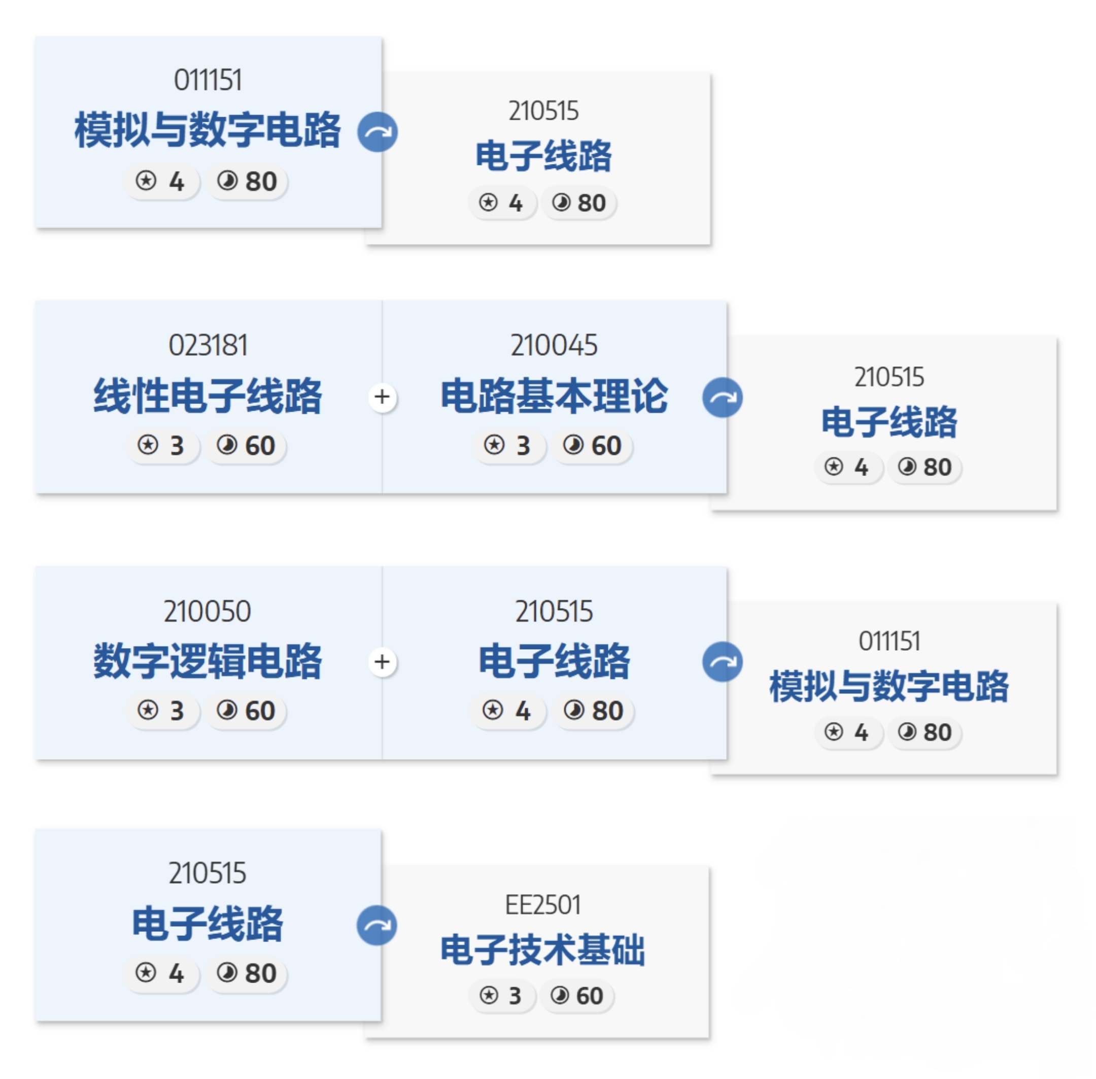 一些课程替代关系:(注意:是 电子技术基础 EE2501,不是 电子技术基础 EE2001)