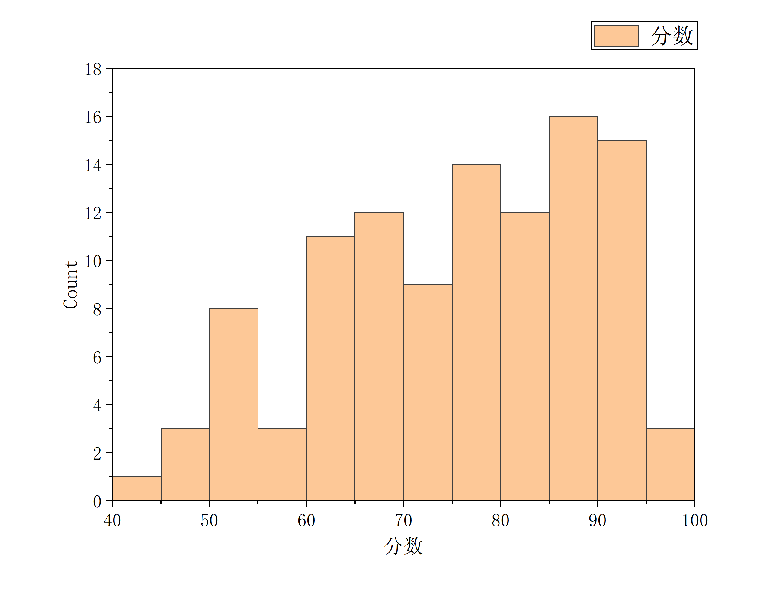 考试的话,期中是卢老师自己出题,而且半开卷,题目也比较容易,算是比较仁慈了吧,从结果来看,大家确实考得也还算高。期末考试闭卷,原本说是“物理学院的叶老师”出题,难度据说会比较高,导致人心惶惶,不过最后其实还是比较简单吧,奈何自己大量犯蠢,得到一个不太满意的结果…考试复习主要靠往年题拟合,对着作业答案直接拟合做题可能需要的知识点对于像我一样考试前几天还跟啥也没学过一样的同学来说应该也是比较好的选择。期末考平均67.6中位数73,期中考成绩分布见下图。