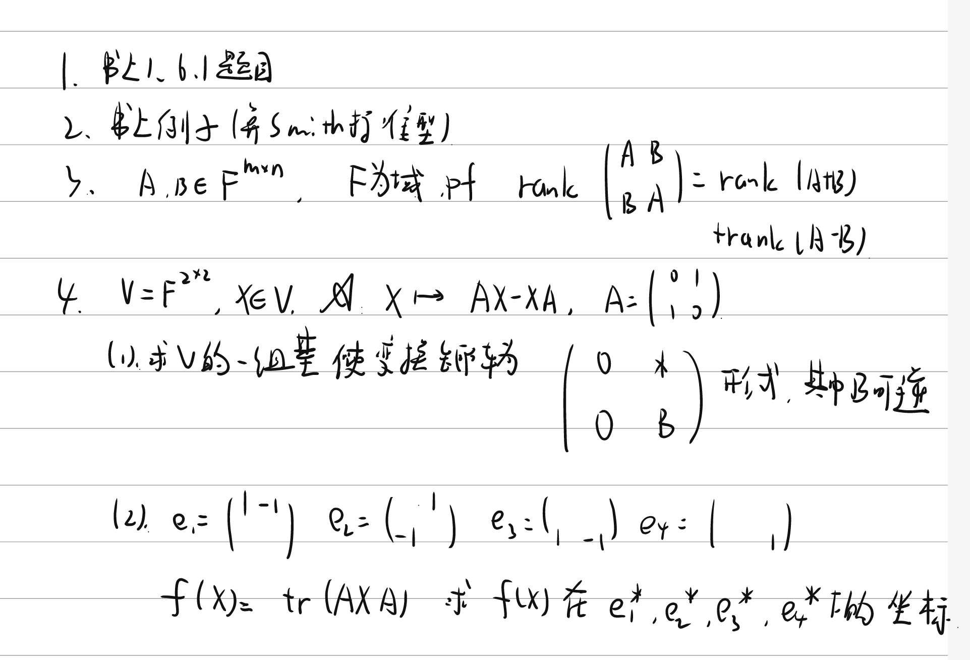 10分给给分,但话说回来,我觉得这门课烂透了,虽然我没怎么学,但速通的一天时间里红温了不下五次,讲义看起来极度不舒适,印刷质量就很难评,内容稀碎完全不成体系,顺序编排感觉也不是很合理,这本讲义试图把前置知识先讲完再讲jordan,但这样在学前面那一堆子空间的时候毫无动机可言纯纯数字游戏,踩了