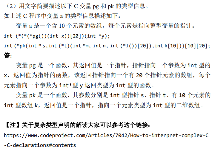 今年没有考古怪的c魔法,只考了个简单的int(*p)[20] 类型判断,好评