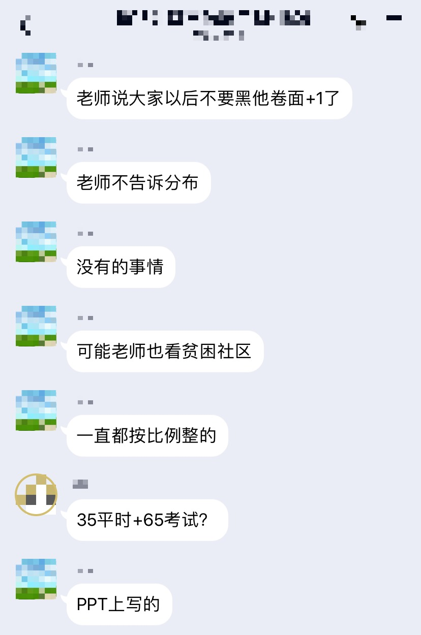 最后班上考的挺不错的(毕竟班上大神多),但貌似作业扣了较多分?卷面占总评65%,但最后总评几乎都是卷面或卷面+1