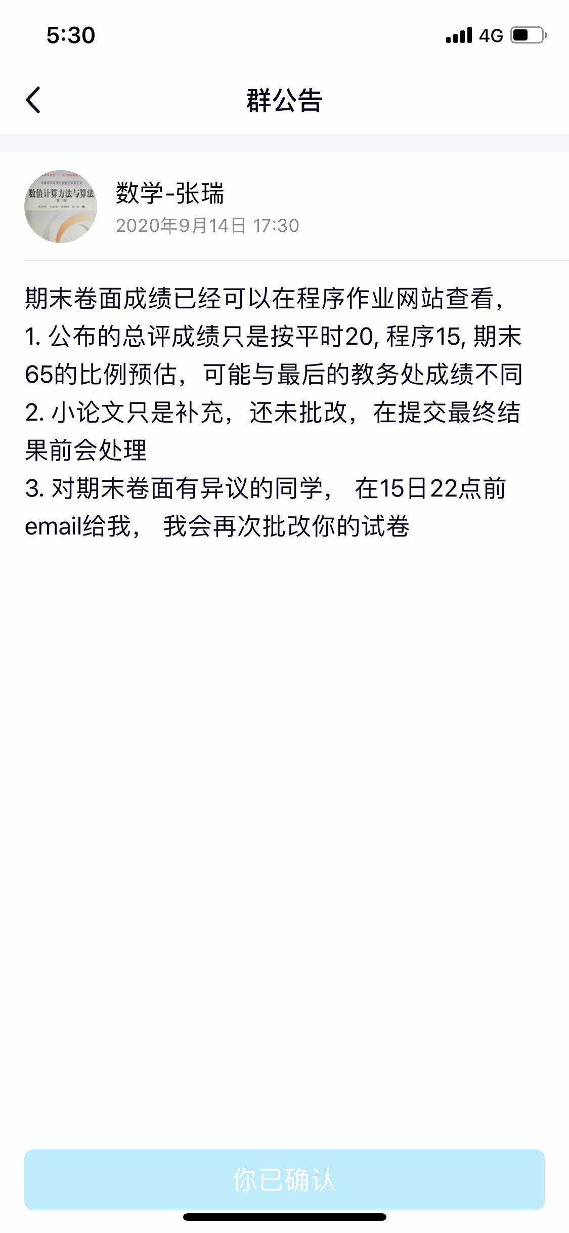 但是,老师和助教的态度实在无法容忍。首先老师在群里发了这样一条公告: