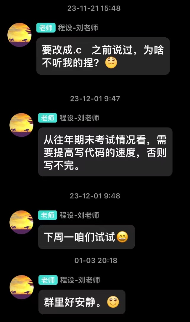 这次期末考试好难,综评最后86(毕竟一个月都没有学程设最后两天速成),私聊老师但是不告诉我期末考了多少分(说还是不要知道了,让我开心过年),估计是捞了呜呜呜心情复杂